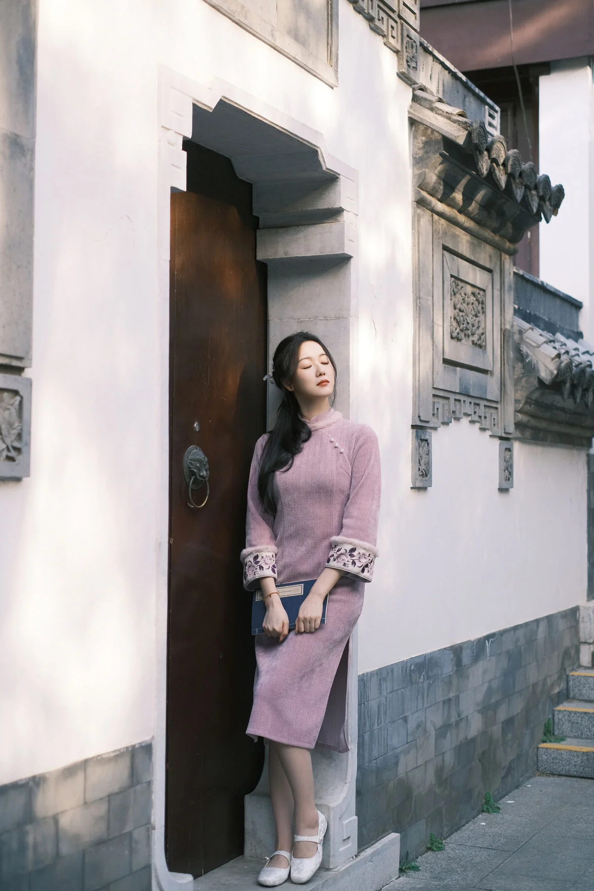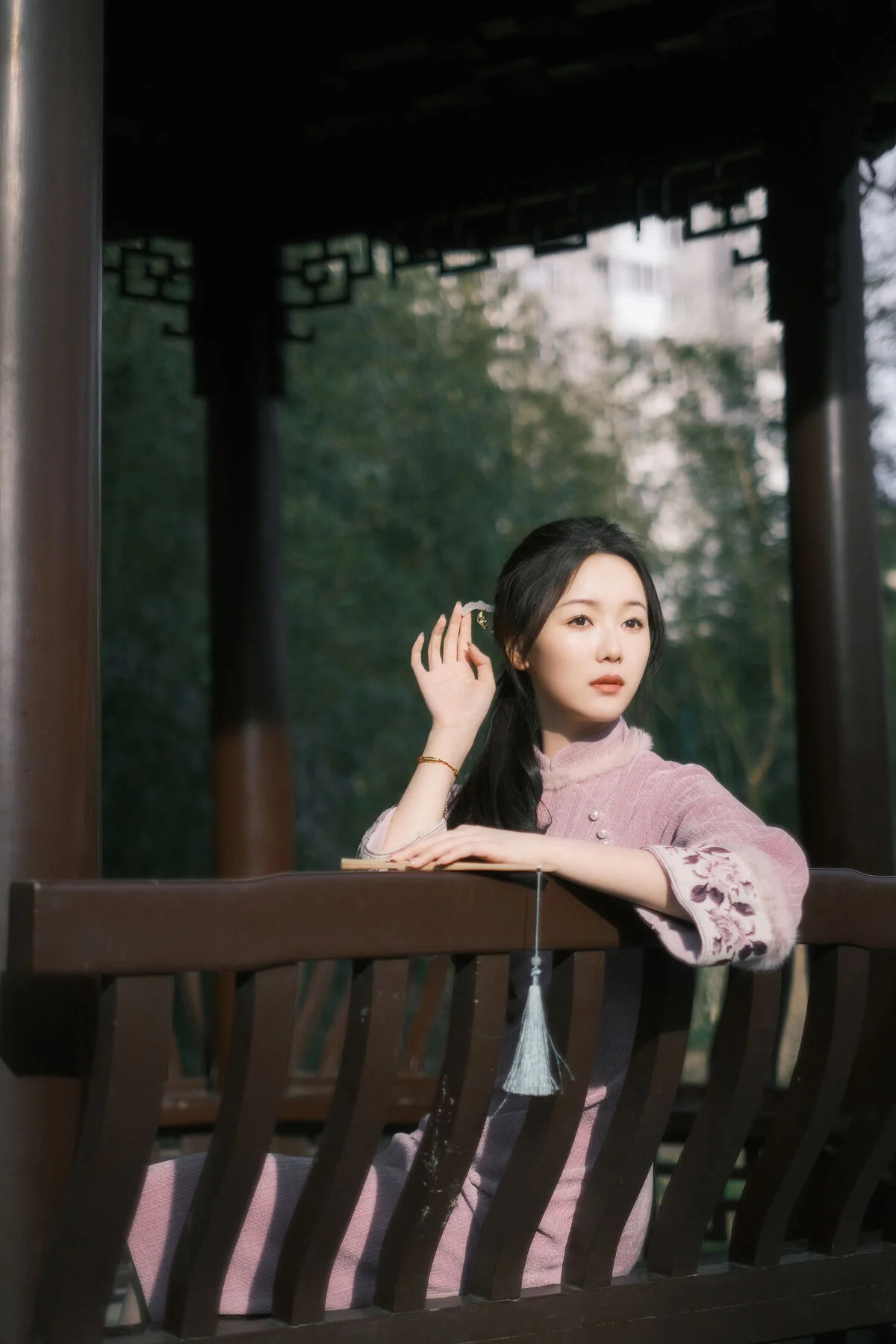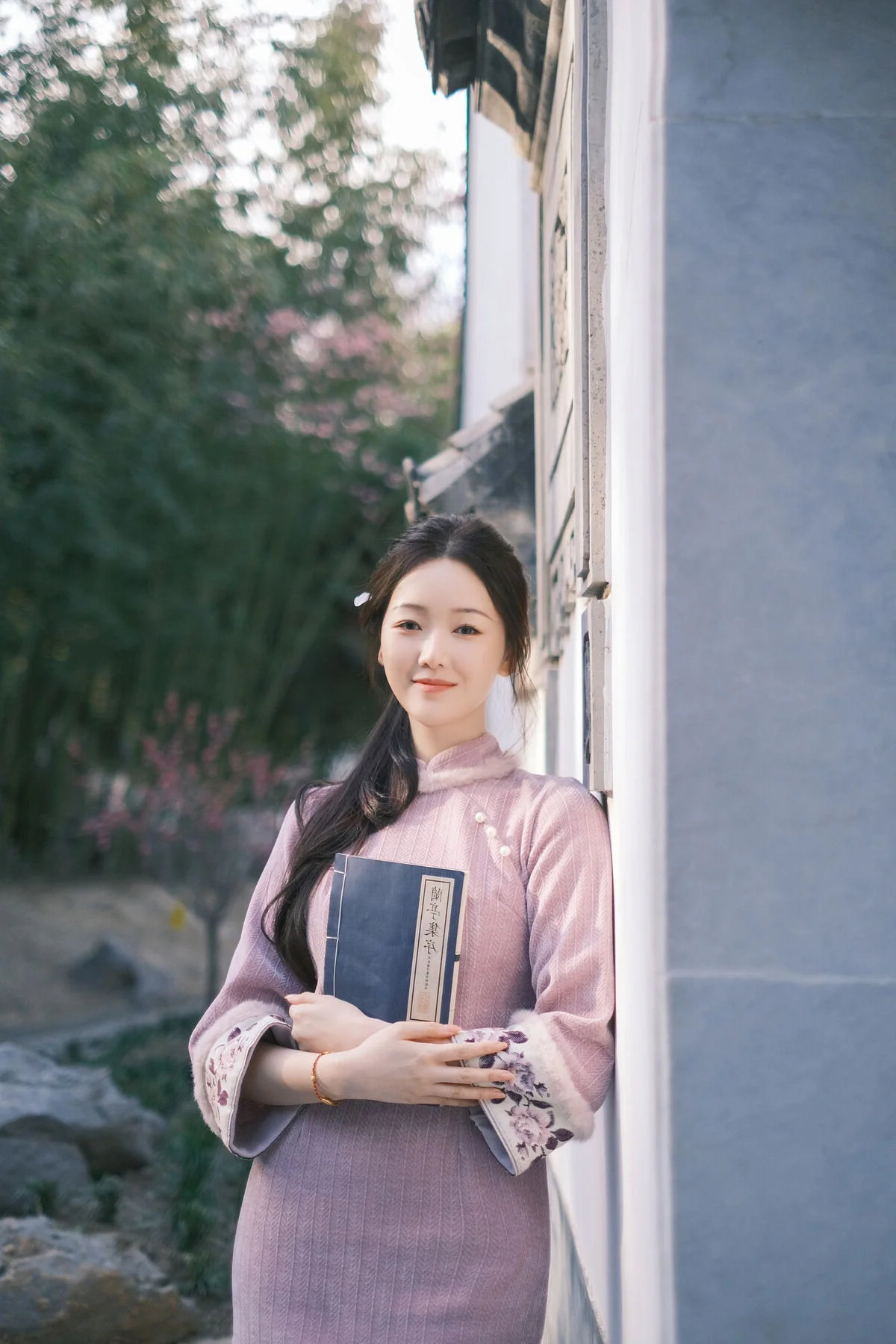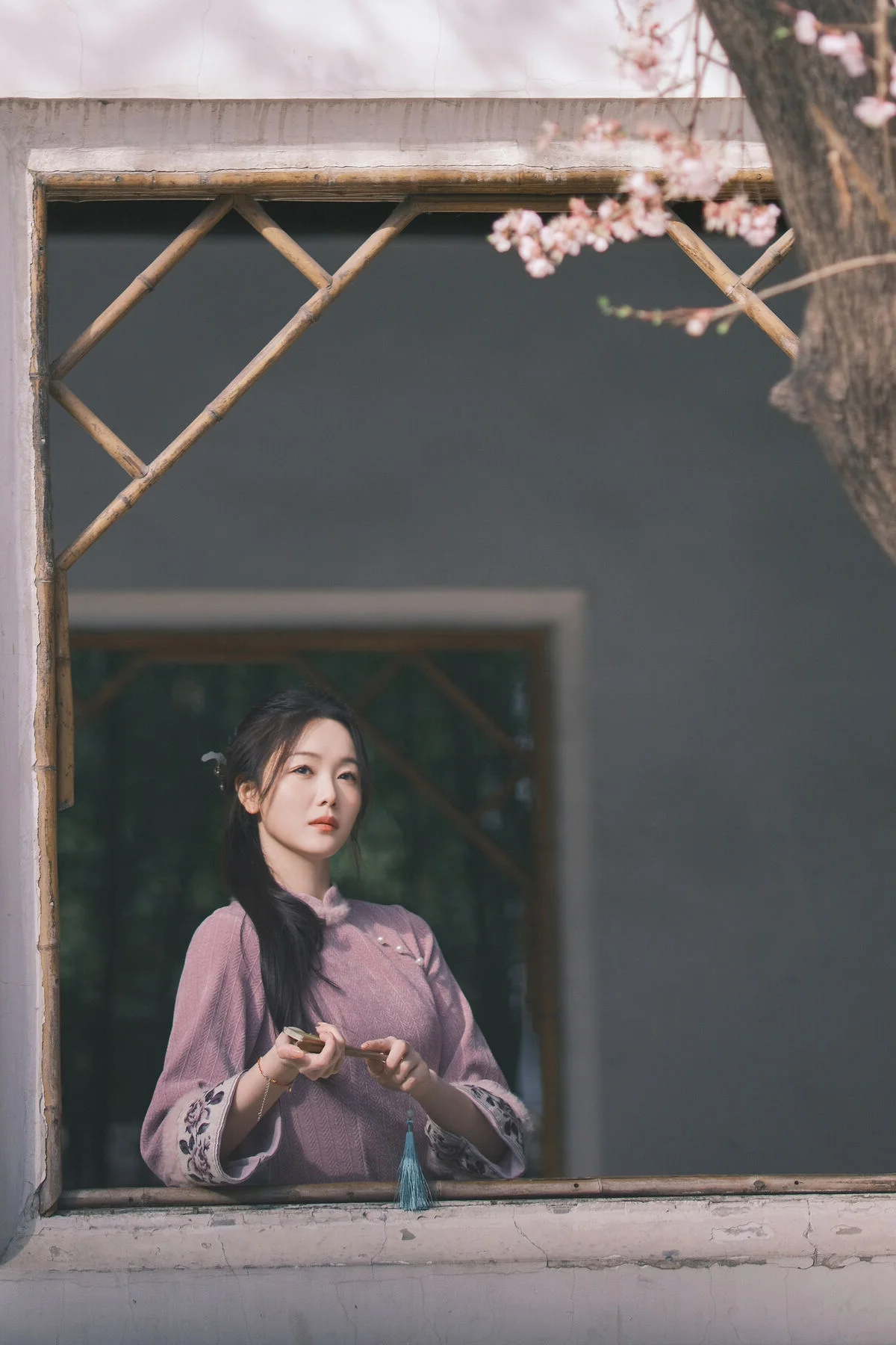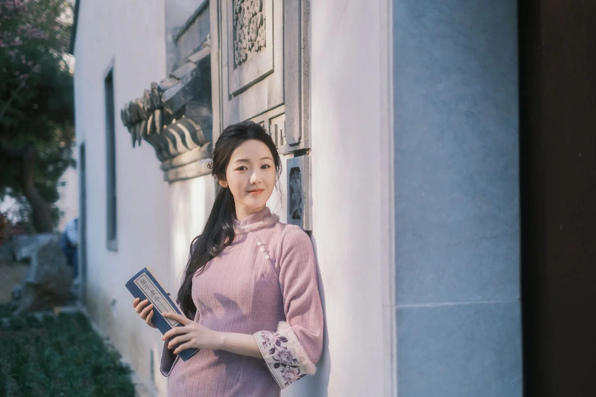 Stepping into the frame like a character from a vintage poem, Xiao Ye Ye Lou Xin Yue Moon captures the essence of spring in this YiTuYu Vol.8849 collection. Dressed in a sophisticated dusty rose garment with traditional silhouettes, the texture of the fabric and the delicate craftsmanship evoke a sense of refined elegance. The composition, framed by blooming branches and soft dappled sunlight, highlights her serene expression and graceful posture. Holding a classic folding fan, she embodies a blend of nostalgia and modern aesthetic sensibility. The mood is quiet and contemplative, reminiscent of a peaceful afternoon in a traditional garden where every detail, from the choice of color palette to the natural backdrop, tells a story of timeless beauty and artistic expression. This visual journey is a tribute to the gentle soul of spring and the enduring charm of oriental femininity.#VintageStyle #QipaoInspiration #OrientalBeauty #SpringElegance #PortraitPhotography #YiTuYu