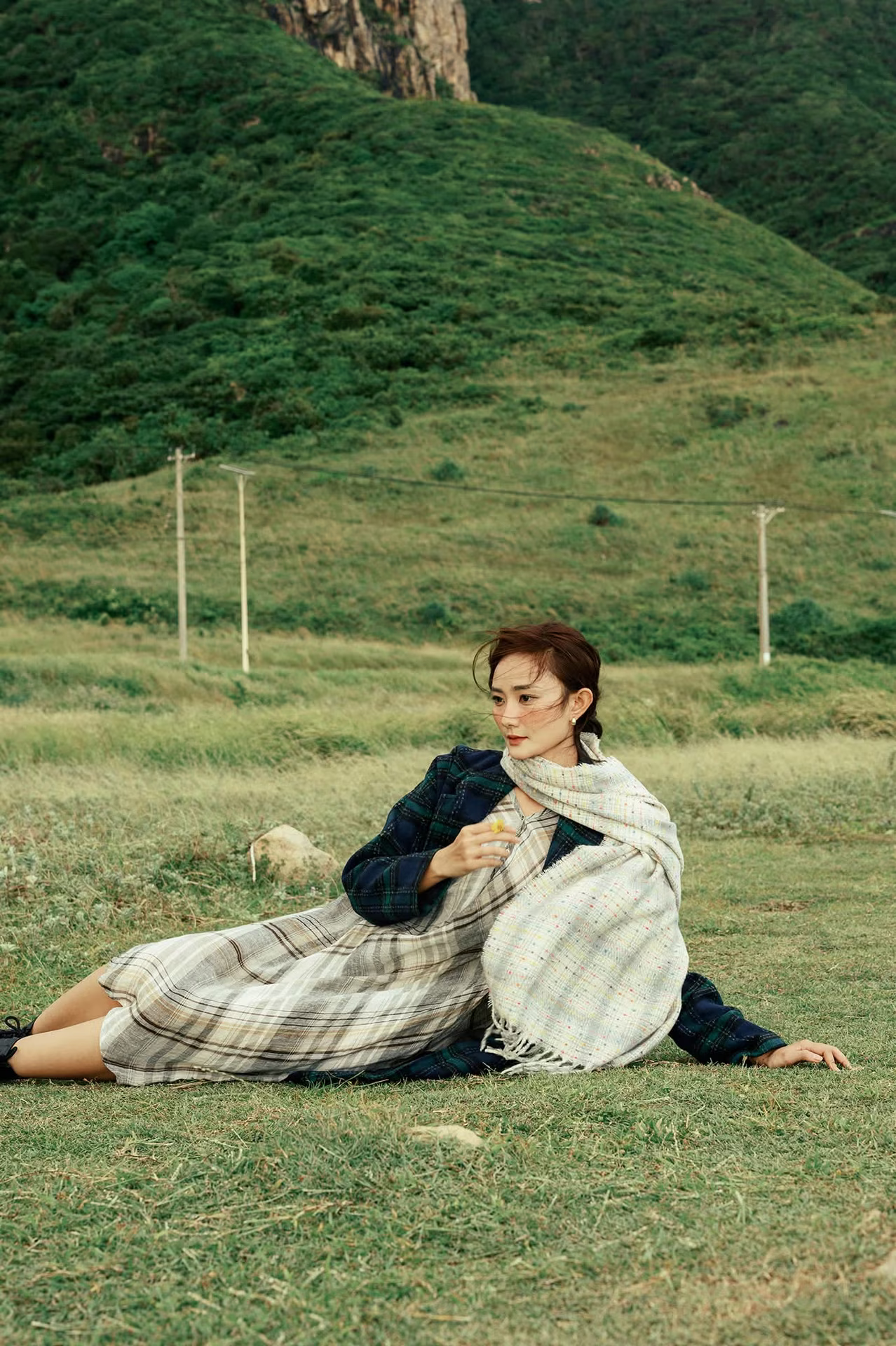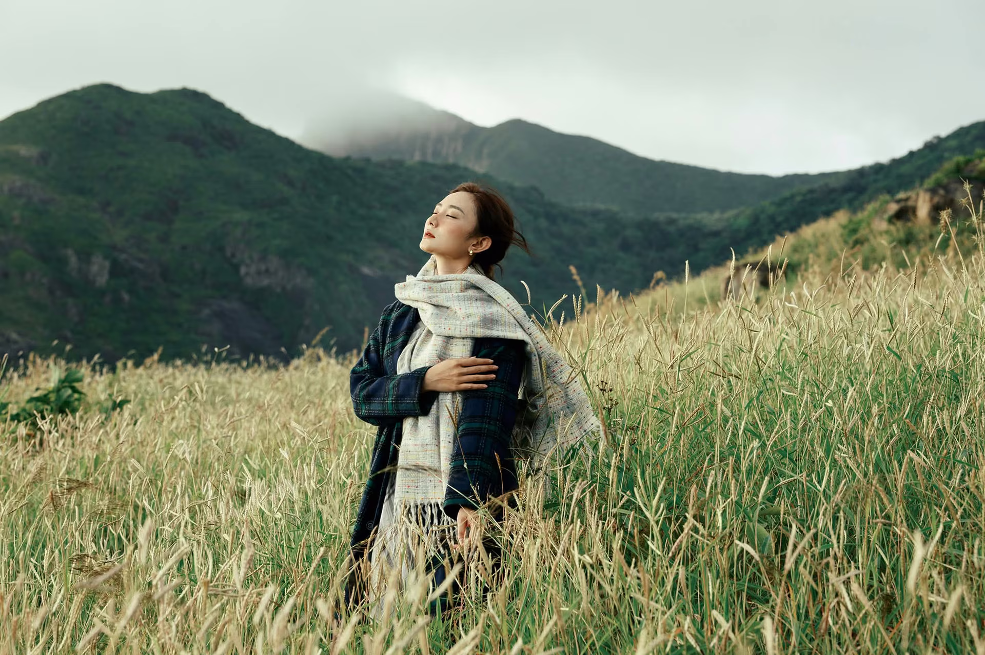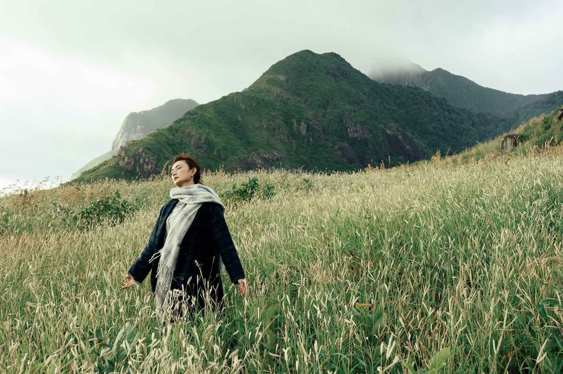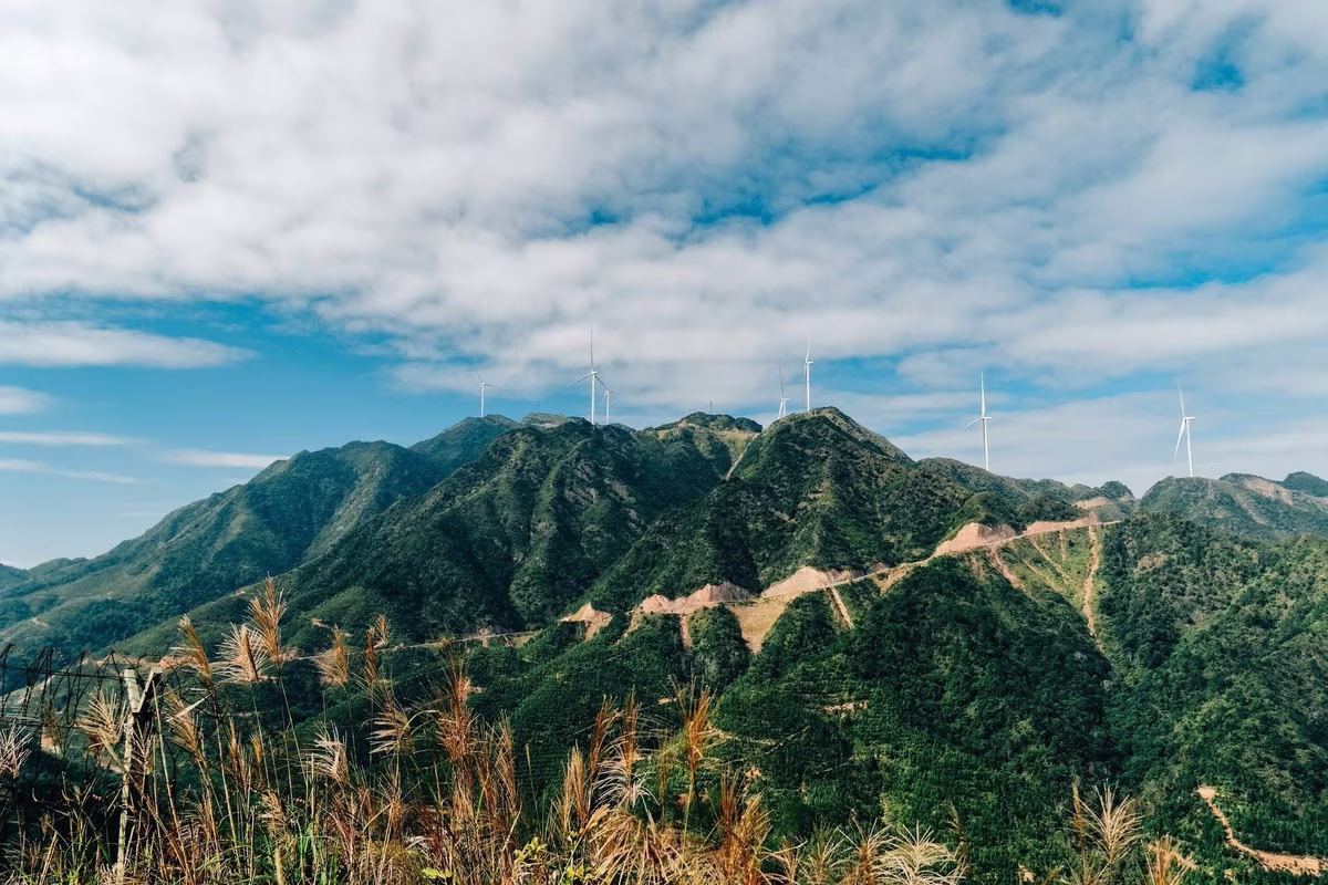This image unveils a majestic natural landscape in Binh Lieu Vietnam where rolling green hills undulate like soft endless ribbons On the hillsides white reed grass plumes sway gently in the wind creating a poetic and captivating scene This embodies the wild serene beauty that travelers seek when visiting this border region Such a stunning vista clearly showcases the diversity and richness of Vietnams nature an ideal destination for those who love to explore and immerse themselves in lush green spaces