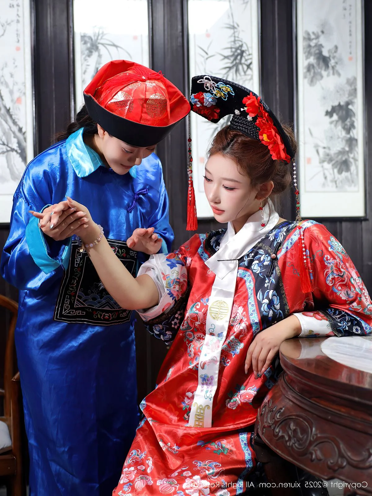 Step into a world of nostalgic grace with the captivating presence of Jin Yun Xi Yuki. Dressed in exquisite Qing Dynasty inspired attire, Yuki embodies a perfect blend of gentleness and nobility. The lustrous red silk adorned with intricate traditional embroidery creates a stunning visual contrast against the deep wooden tones of the antique interior. Her gaze is filled with a subtle poetic melancholy that draws the viewer into a silent narrative of the past. The elaborate headpiece with vibrant floral accents beautifully frames her delicate features, showcasing a sophisticated appreciation for Oriental aesthetics. Every detail from the soft ambient lighting to the classic furniture transforms the scene into a cinematic moment where cultural heritage meets modern artistic expression. It is a breathtaking tribute to timeless style and the enduring charm of classical beauty that resonates with anyone who loves historical fashion and visual storytelling.#TimelessElegance #AsianAesthetic #TraditionalCouture #JinYunXiYuki #ArtisticPhotography