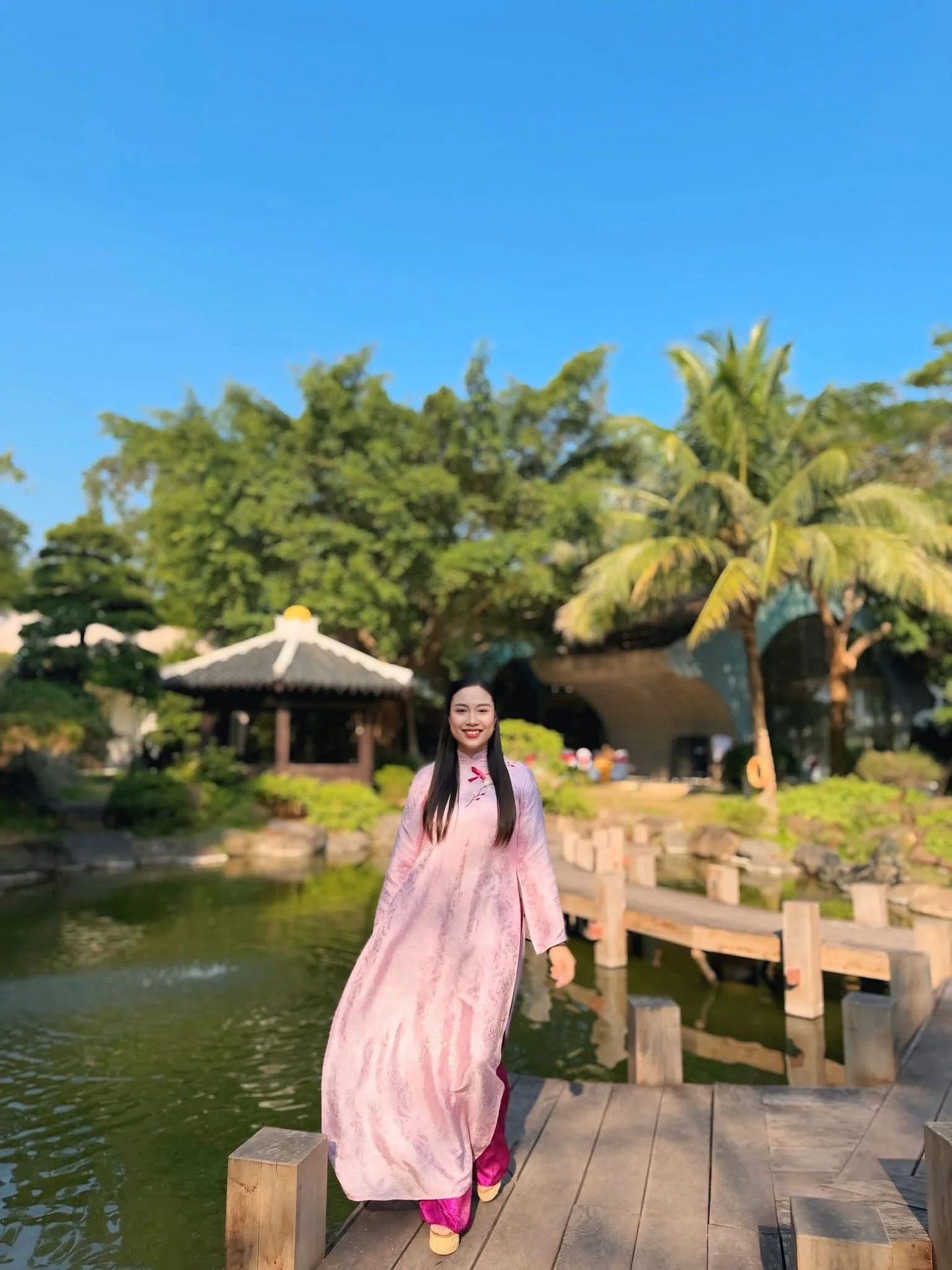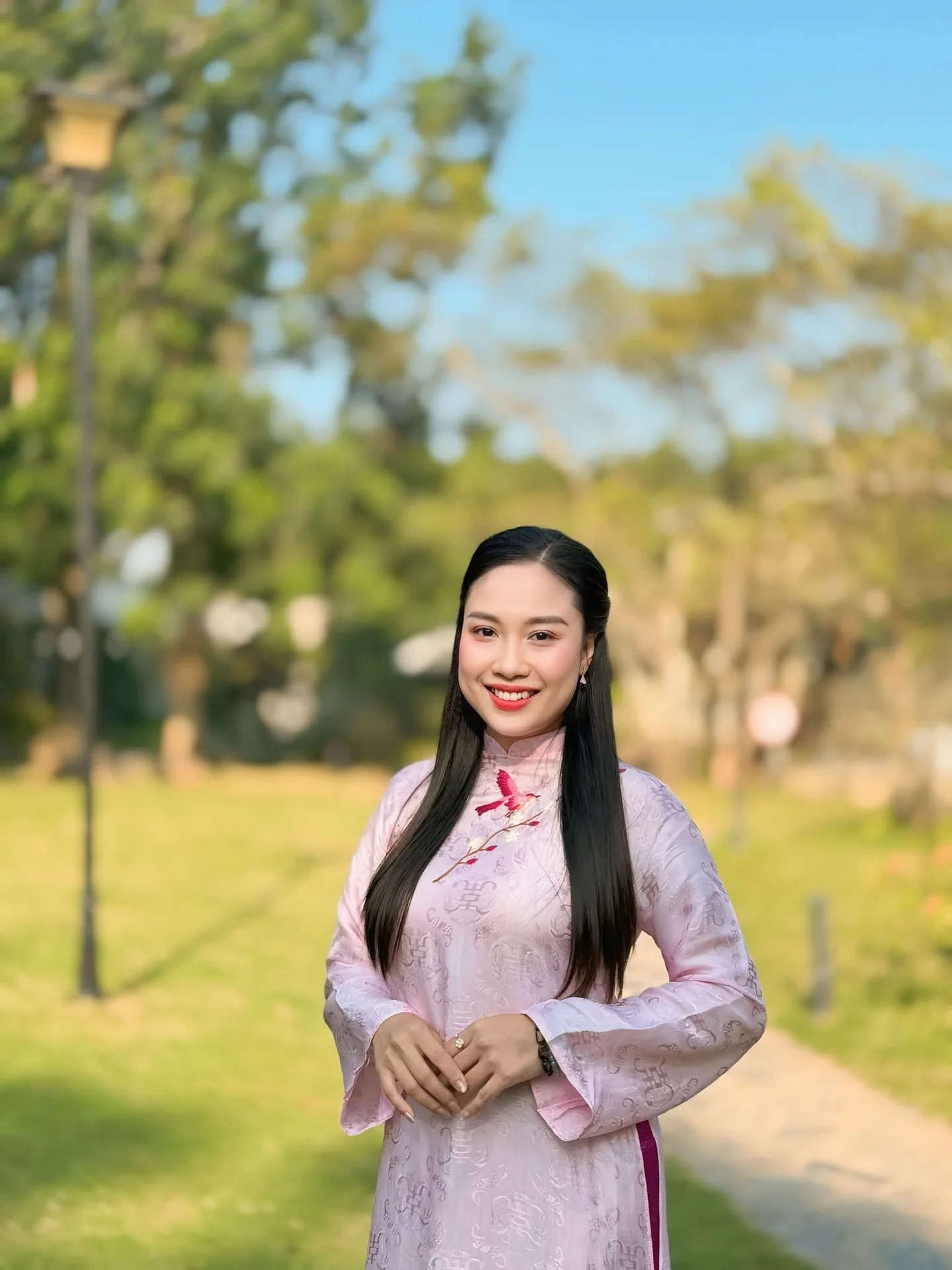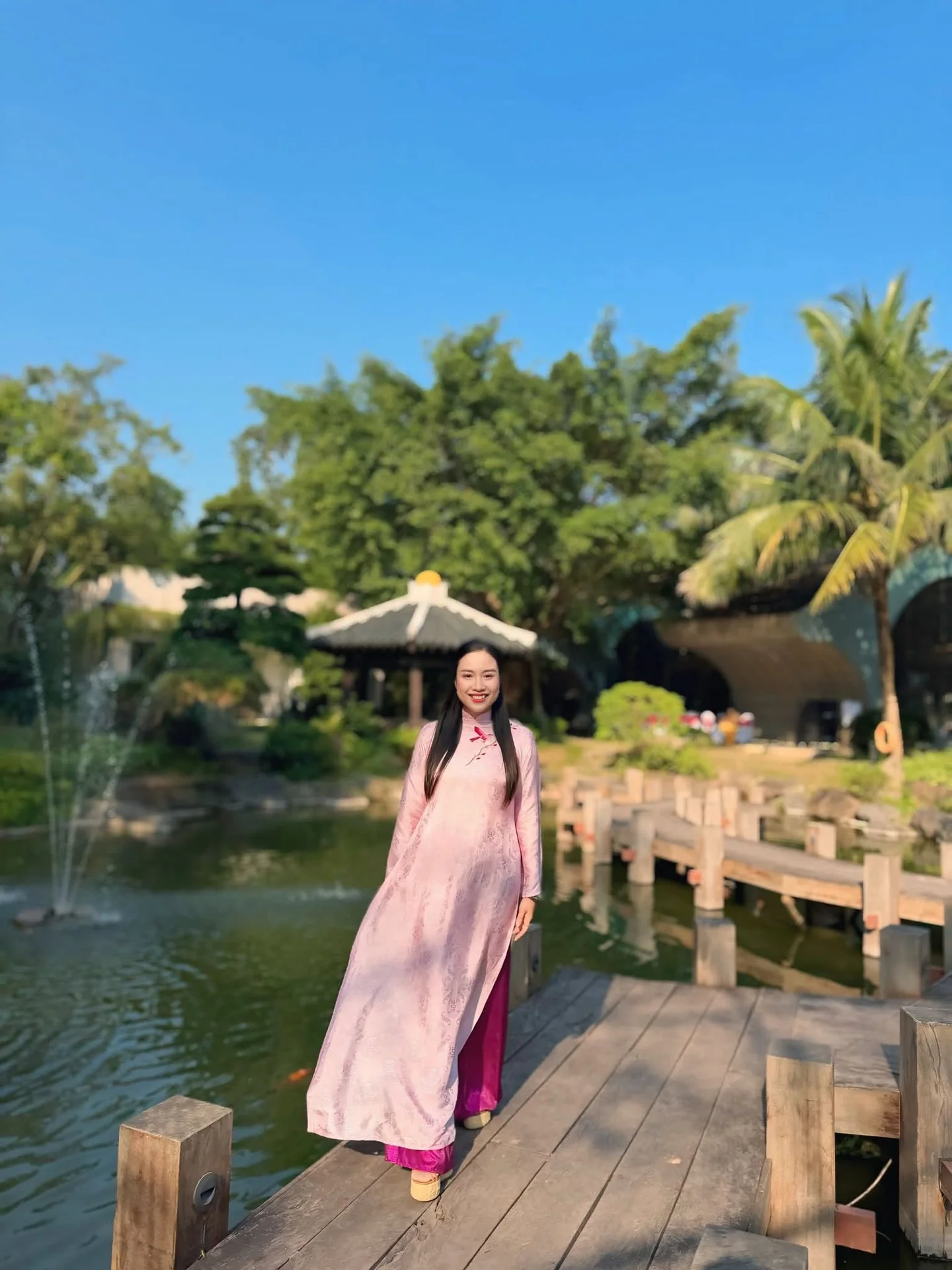 Basking in the soft glow of the morning sun, the traditional Vietnamese Ao Dai in a delicate pastel pink shade exudes an aura of pure elegance and grace. The intricate fabric with subtle patterns reflects a sophisticated aesthetic, perfectly blending cultural heritage with a touch of modern femininity. Her radiant smile and gentle posture capture a moment of genuine happiness, harmonizing beautifully with the lush green garden backdrop and the vintage charm of the surroundings. The way the light dances on the material highlights the fluid silhouette that the Ao Dai is famous for, creating a visual poem of style and tradition. Including the identifier, this image evokes a sense of nostalgic peace and poetic inspiration, reminding us of the enduring charm found in simplicity. It is a beautiful celebration of identity and the artistic spirit of travel photography, capturing the essence of a peaceful day spent amidst nature and light.#AoDai #VietNam #TraditionalElegance #TravelVietnam #CulturalHeritage #VintageVibe