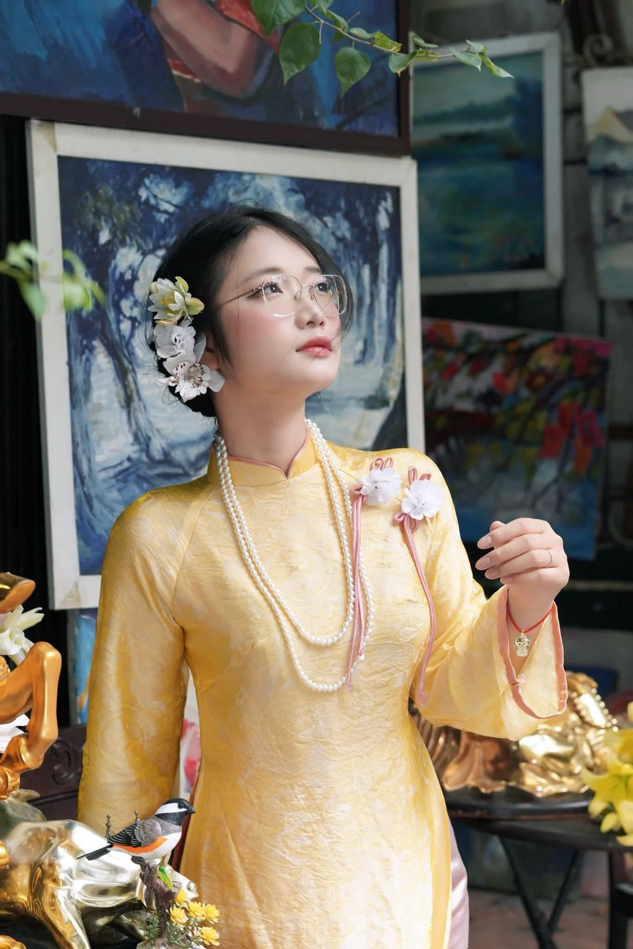 #VietnameseAoDai , #SilkFashion , #TraditionalElegance , #YellowDress , #SustainableLuxury , #CulturalHeritage , #AsianStyle , #MulberrySilk