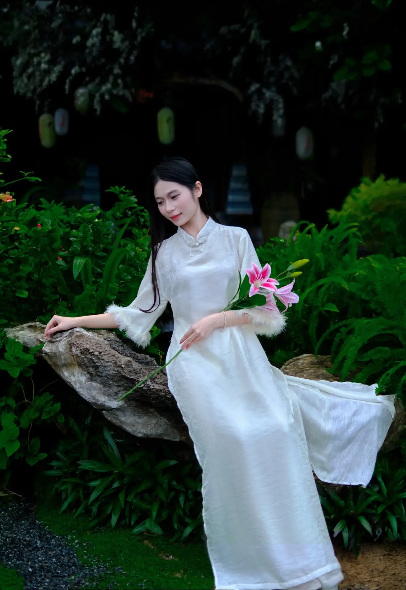 #AoDai #VietnameseBeauty #Lilies #TraditionalFashion #AsianGirl