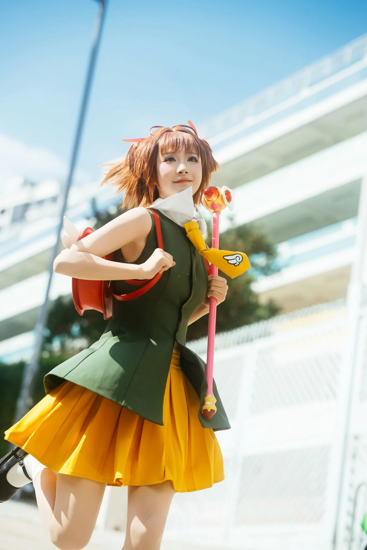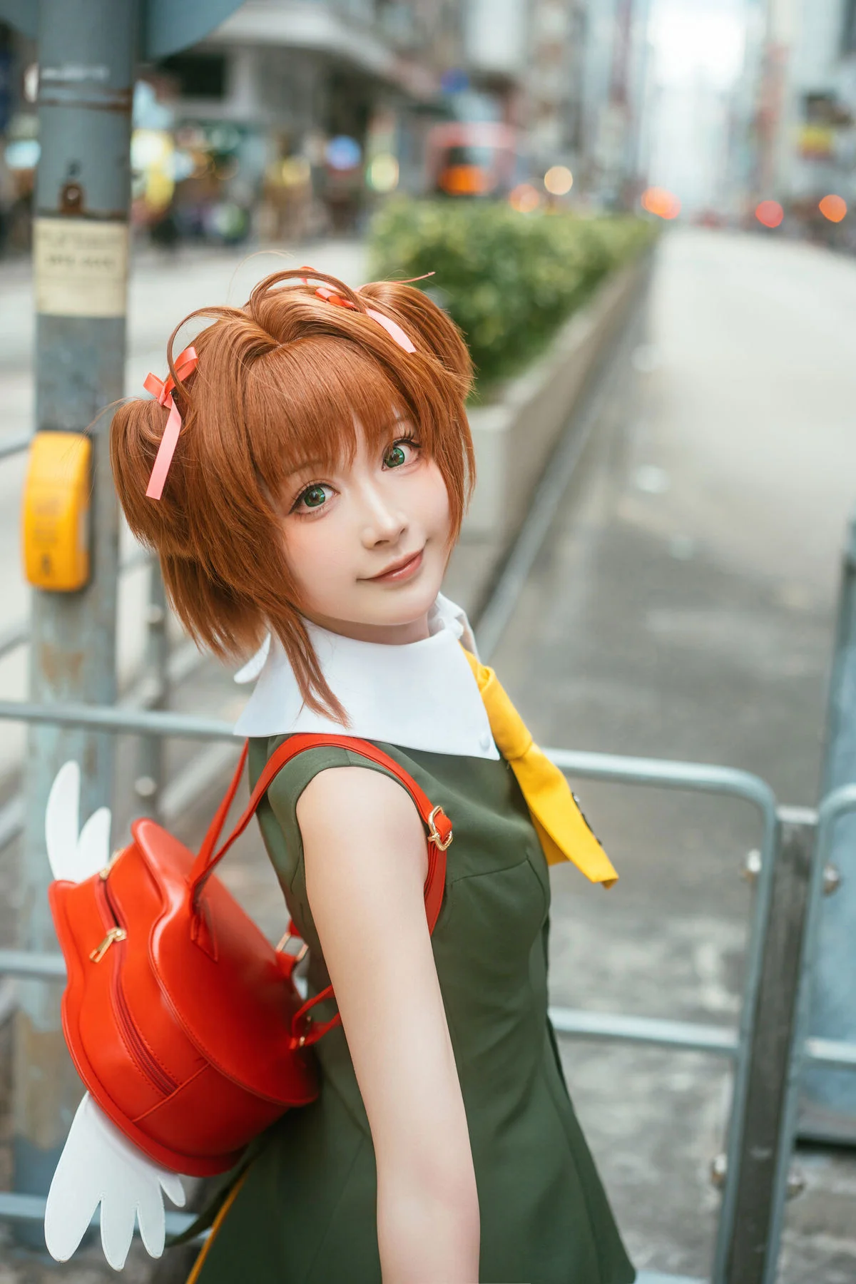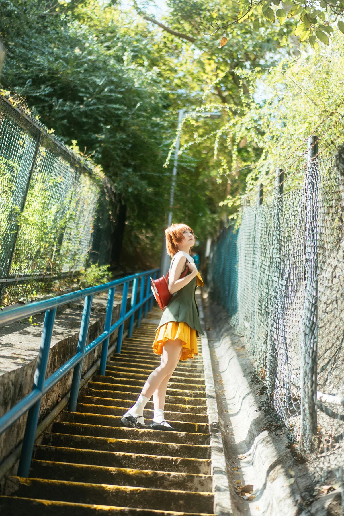 Walking through modern city streets, where gentle sunlight captures every vibrant moment of Long Mao Jiang Pupu. Dressed in an energetic green and yellow outfit, she looks like a character stepping out of a colorful animation, bringing an irresistible wave of positive energy and youthful charm. The structured fabric creates a refined silhouette, paired perfectly with a whimsical fox backpack and classic Mary Jane shoes, blending playfulness with artistic visual flair. Her sparkling eyes and radiant smile not only brighten the frame but also inspire a sense of urban adventure and freedom. This collection is a beautiful harmony of fashion language and a free spirited soul, where every step tells a story of joy and boundless creativity. It is a visual journey that celebrates the beauty of youth and the art of self expression in the heart of the city, leaving a lasting impression of warmth and nostalgia for those who love the intersection of art and life.#UrbanAdventure #ArtLanguage #FashionInspiration #LongMaoJiangPupu #VisualAesthetics