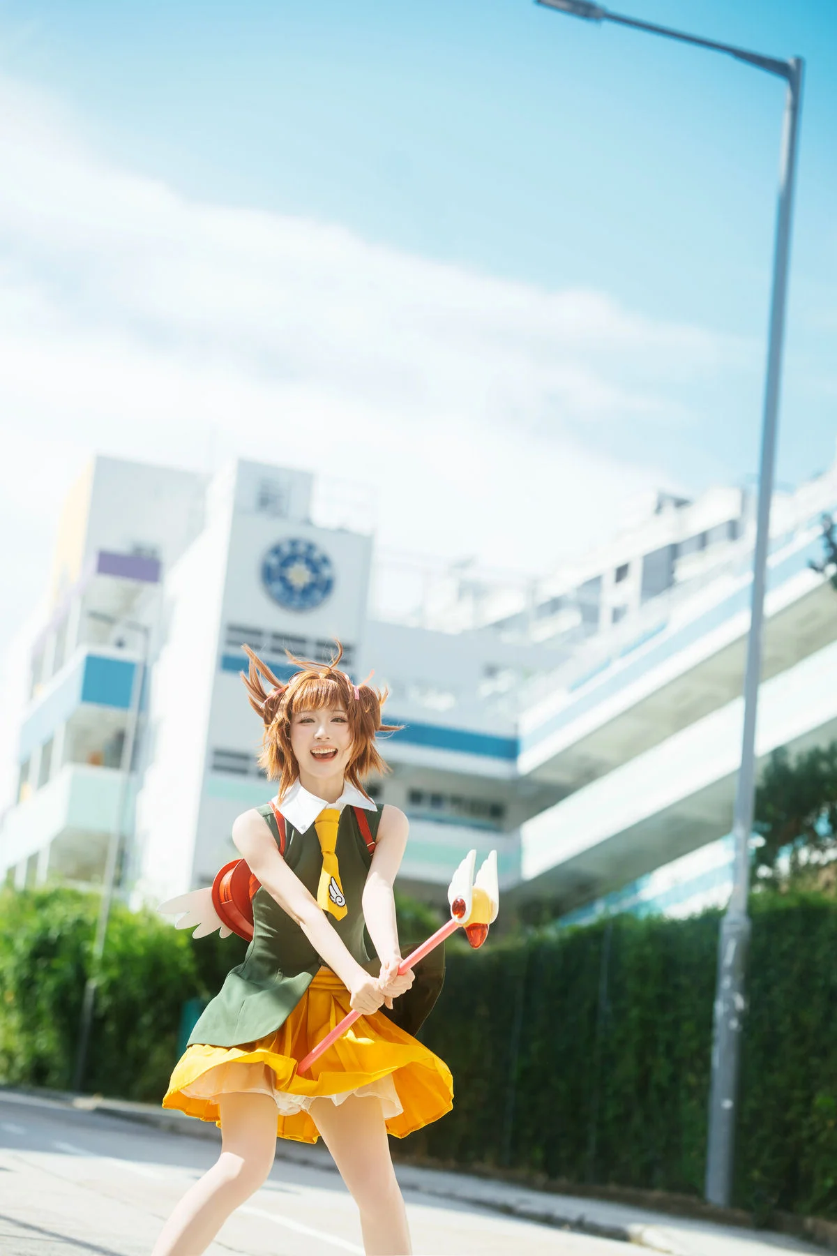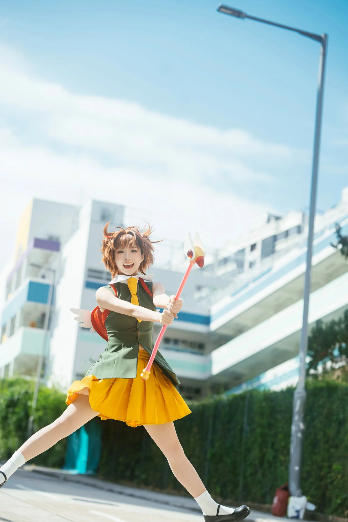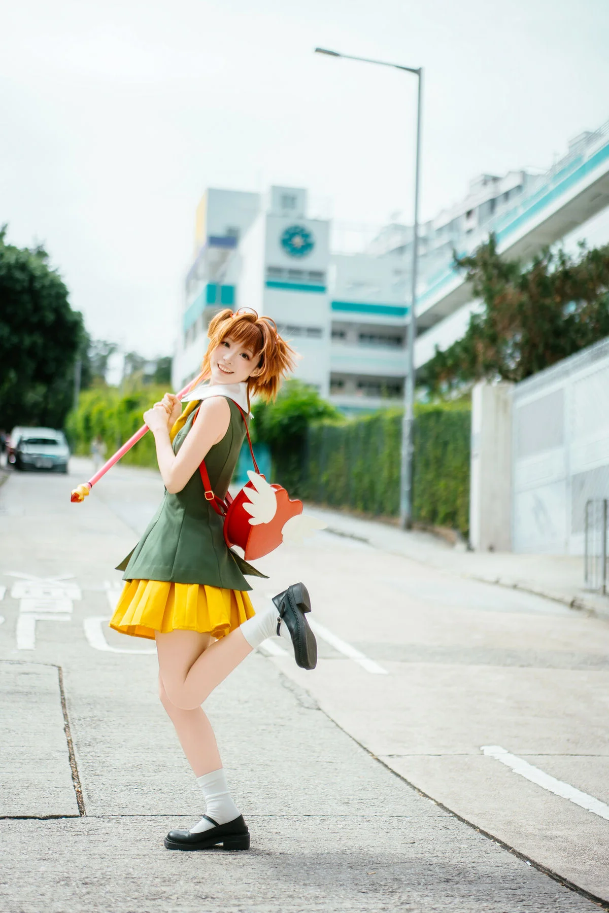 Walking through modern city streets, where gentle sunlight captures every vibrant moment of Long Mao Jiang Pupu. Dressed in an energetic green and yellow outfit, she looks like a character stepping out of a colorful animation, bringing an irresistible wave of positive energy and youthful charm. The structured fabric creates a refined silhouette, paired perfectly with a whimsical fox backpack and classic Mary Jane shoes, blending playfulness with artistic visual flair. Her sparkling eyes and radiant smile not only brighten the frame but also inspire a sense of urban adventure and freedom. This collection is a beautiful harmony of fashion language and a free spirited soul, where every step tells a story of joy and boundless creativity. It is a visual journey that celebrates the beauty of youth and the art of self expression in the heart of the city, leaving a lasting impression of warmth and nostalgia for those who love the intersection of art and life.#UrbanAdventure #ArtLanguage #FashionInspiration #LongMaoJiangPupu #VisualAesthetics