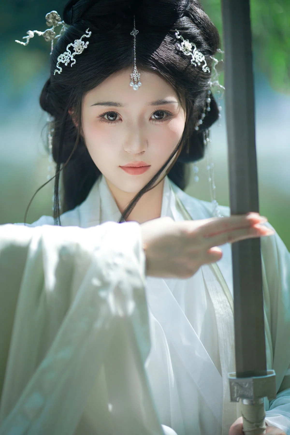 This stunning capture unveils a minimalist yet deeply artistic space where Coser Xenon perfectly embodies the character Miyabi with a sharp and mesmerizing aura. The first thing that catches the eye is the flawless blend of elegant white shirting and the bold, edgy vibe of a black pleated skirt paired with sleek high heels. Her body language exudes a unique confidence, balancing the cold determination of a warrior with a soft, feminine grace. The katana held firmly in her hand is more than just a prop, it serves as a symbol of the hidden strength behind her enchanting gaze. The dominant monochromatic palette of black and white creates a striking contrast that beautifully highlights her porcelain skin and long, flowing dark hair. Bathed in soft natural light, every detail from the fabric textures to the iconic fox ears is rendered with clarity, creating a vibe that feels both grounded and ethereal. It is a true visual masterpiece for those who appreciate modern fashion infused with the mystical charm of cosplay culture, inviting you to lose yourself in a world of fantasy and style.#CosplayArt #Miyabi #Cosplay #XenonCoser #ModernMinimalism #VisualAesthetic