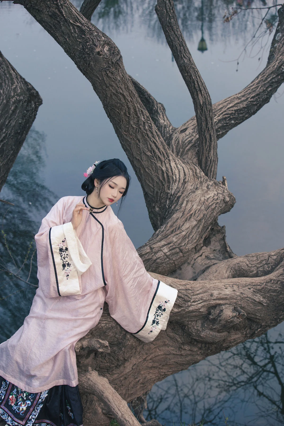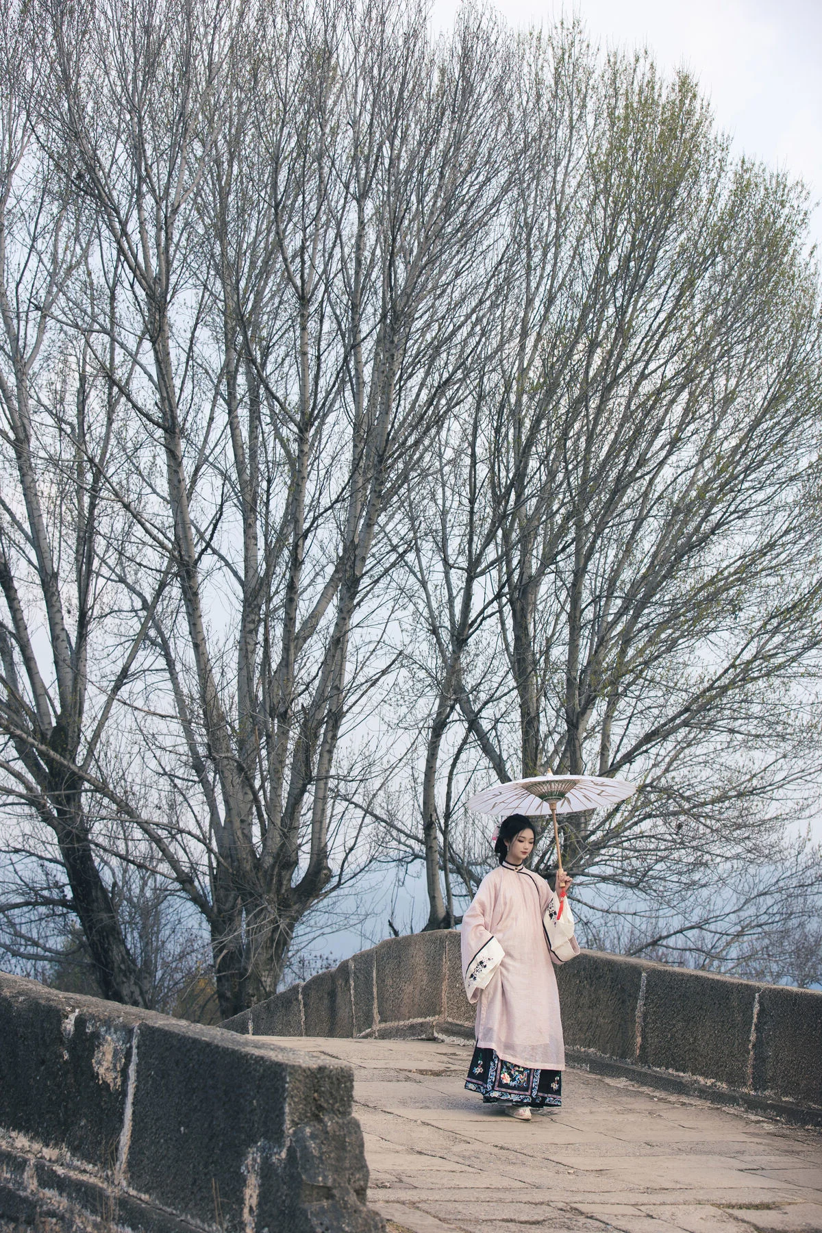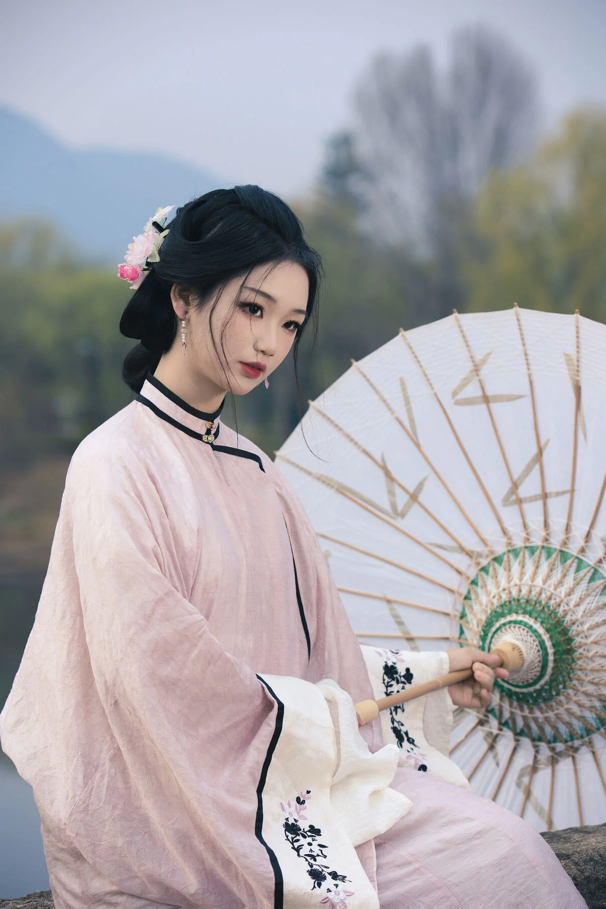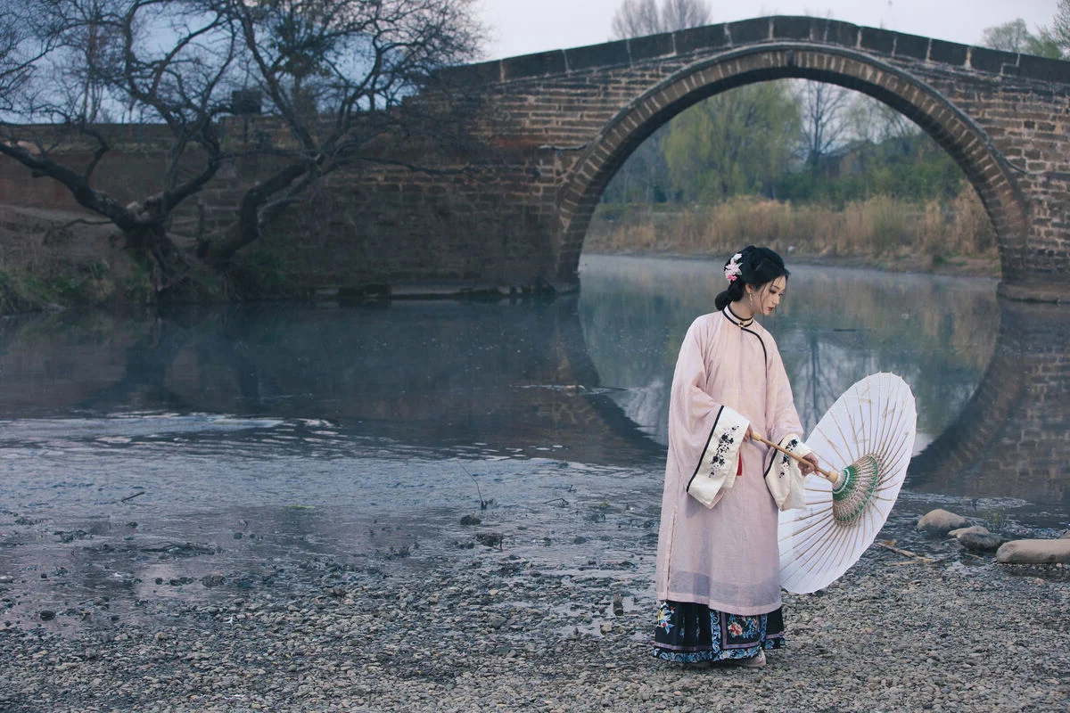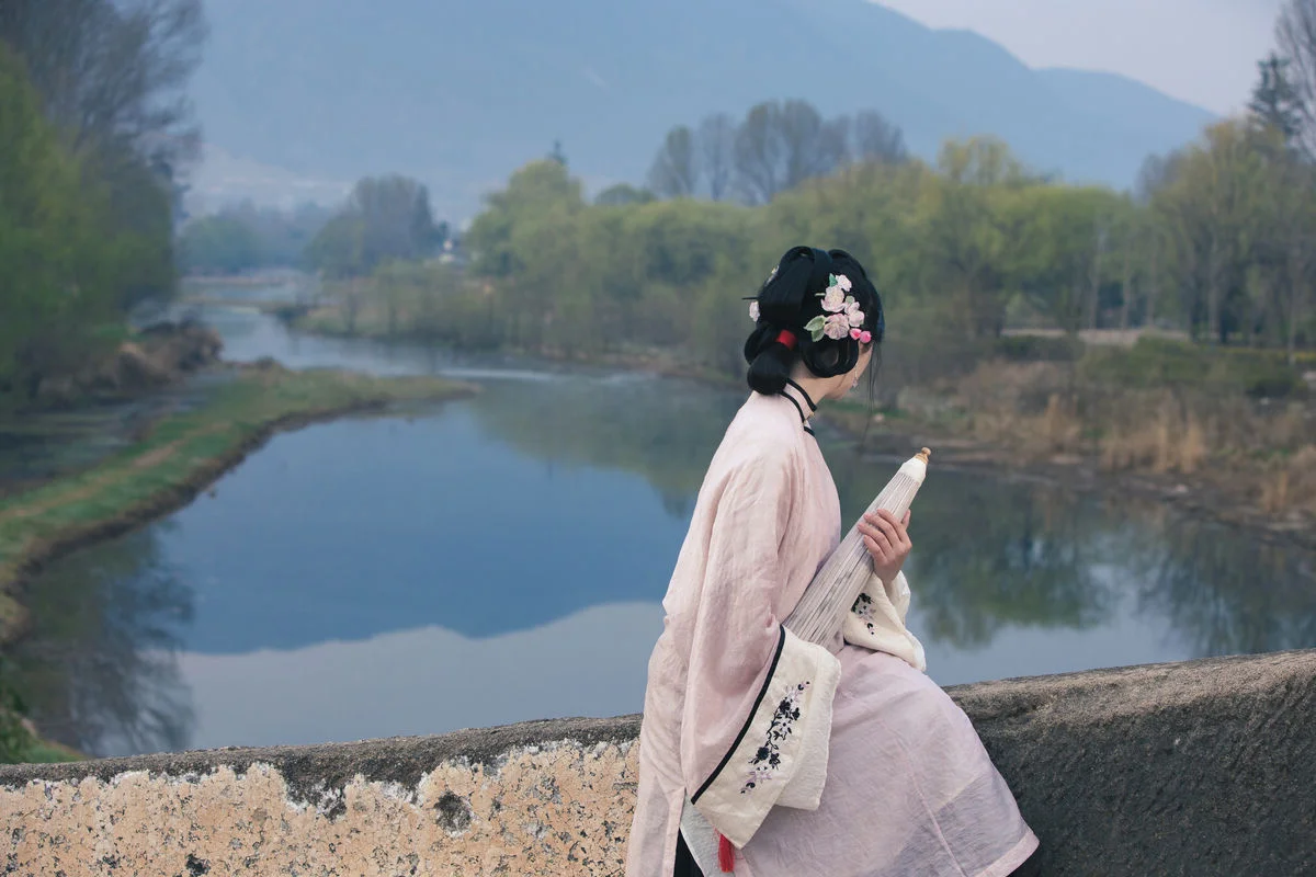 Immersed in the ethereal mist by the quiet riverbank, Yi Ming appears as a muse stepping out of a classical painting in the Art Language Vol.8869 collection. Dressed in a soft pastel pink traditional ensemble with delicate black accents, she perfectly embodies a blend of nostalgic charm and refined grace. The flowing fabric and the elegant paper umbrella create a visual harmony that speaks to the soul of minimalist art. Every detail, from the intricate floral hair ornaments to the traditional embroidered shoes, reflects a sophisticated aesthetic that honors cultural heritage. The soft morning light and the fragrant mist mentioned in the theme add a layer of mystery and romance to the scene, making it feel like a fleeting moment captured in time. Her gentle gaze and poise evoke a sense of serenity and poetic longing, inviting the viewer into a world where fashion meets fine art. This portrayal is more than just a photograph; it is a celebration of visual storytelling and the timeless beauty of the Asian spirit amidst the tranquility of nature.#ArtLanguage #OrientalBeauty #TraditionalStyle #YiMing #VisualAesthetics #YiTuYu