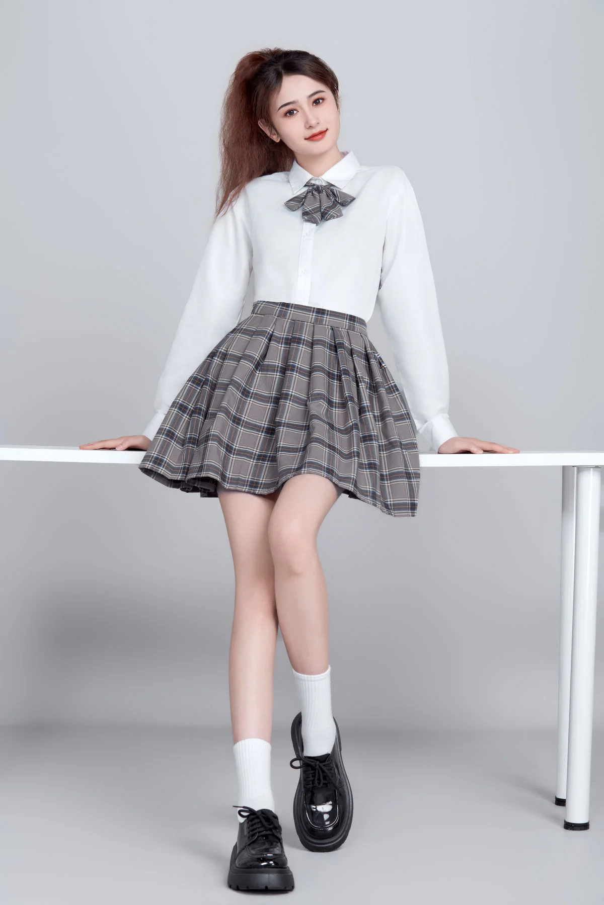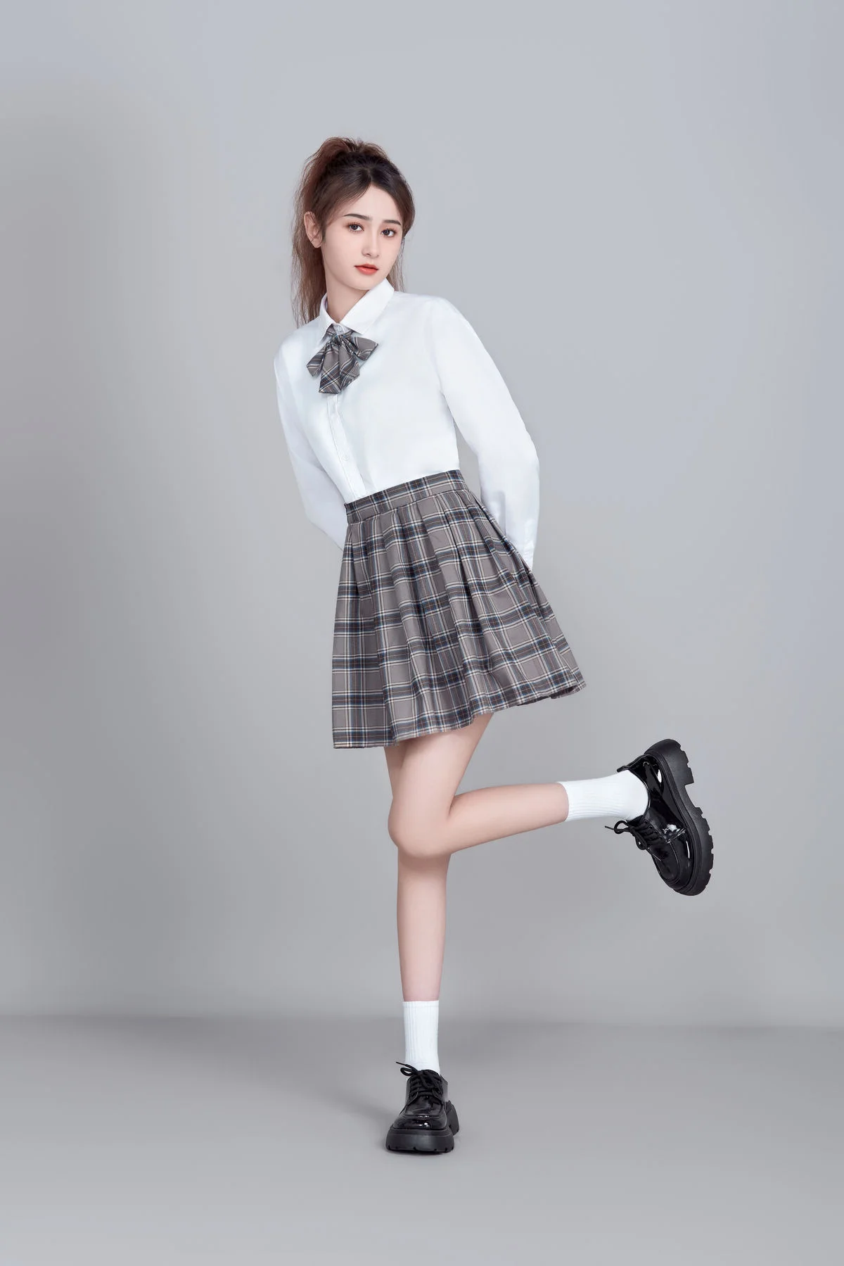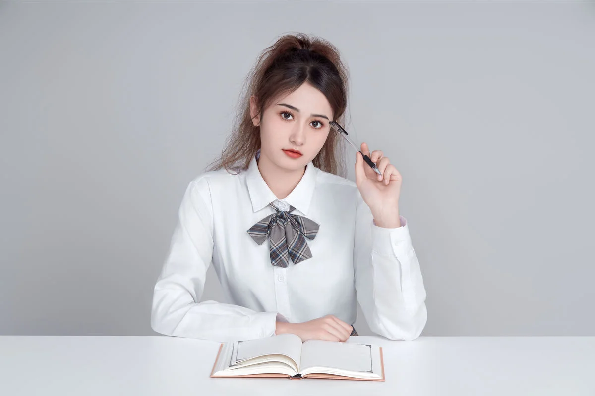 Step into a world where classic academic aesthetics meet fine art photography. In the latest release of 'Art Language' Vol.9089, model Kan Du Ke (坎杜克) embodies the essence of the 'Light Academia' trend, creating a visual narrative that is both nostalgic and refreshingly modern. This collection is a masterclass in minimalist styling and emotional storytelling.Dressed in a crisp white shirt and a perfectly pleated plaid skirt, Kan Du Ke redefines the iconic schoolgirl aesthetic with a graceful, sophisticated twist. The photography focuses on the silent dialogue between the subject and her surroundings, utilizing soft, natural lighting to highlight the ethereal quality of the moment. Each of the 15 frames captured in this series serves as a testament to the power of simplicity in fashion.