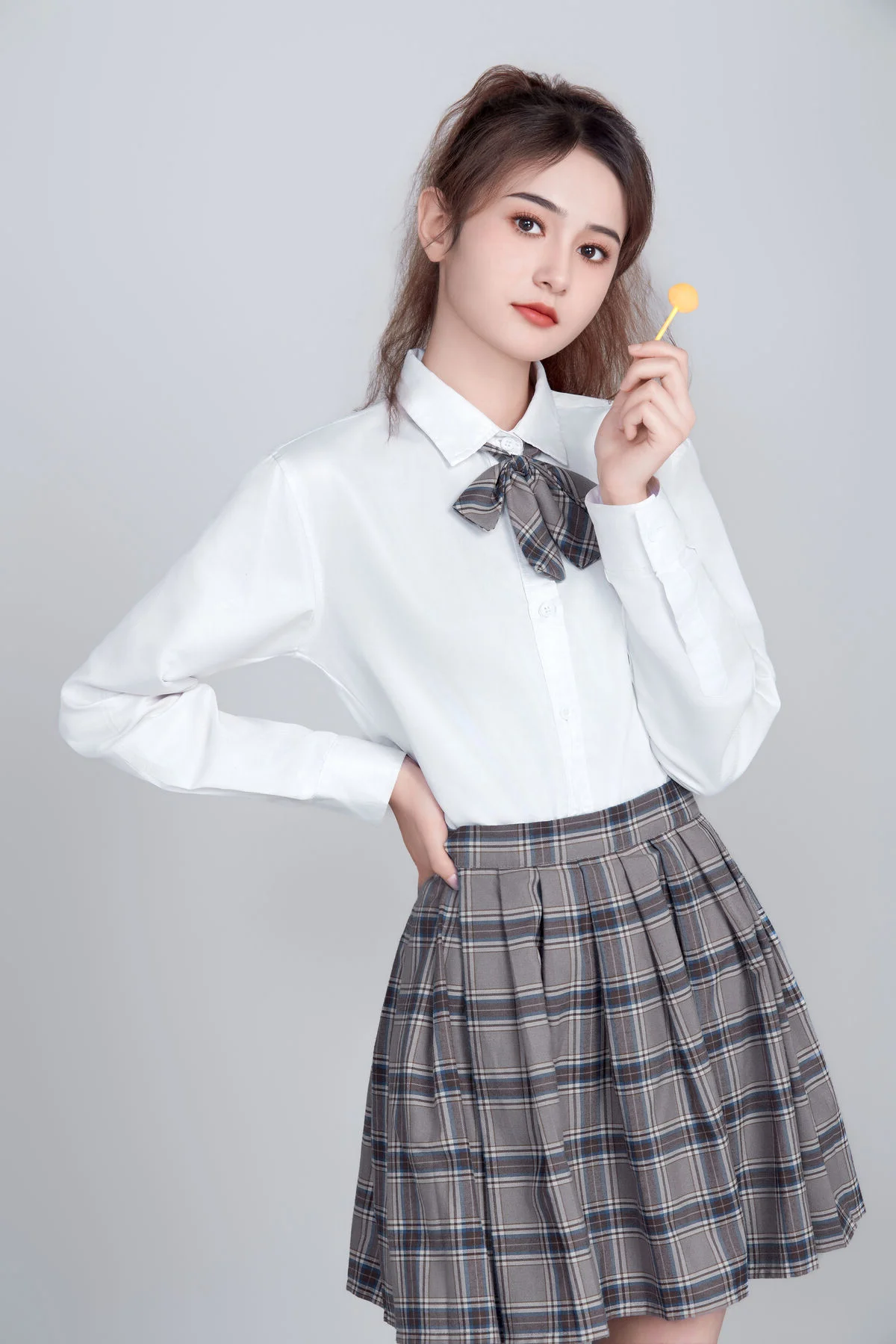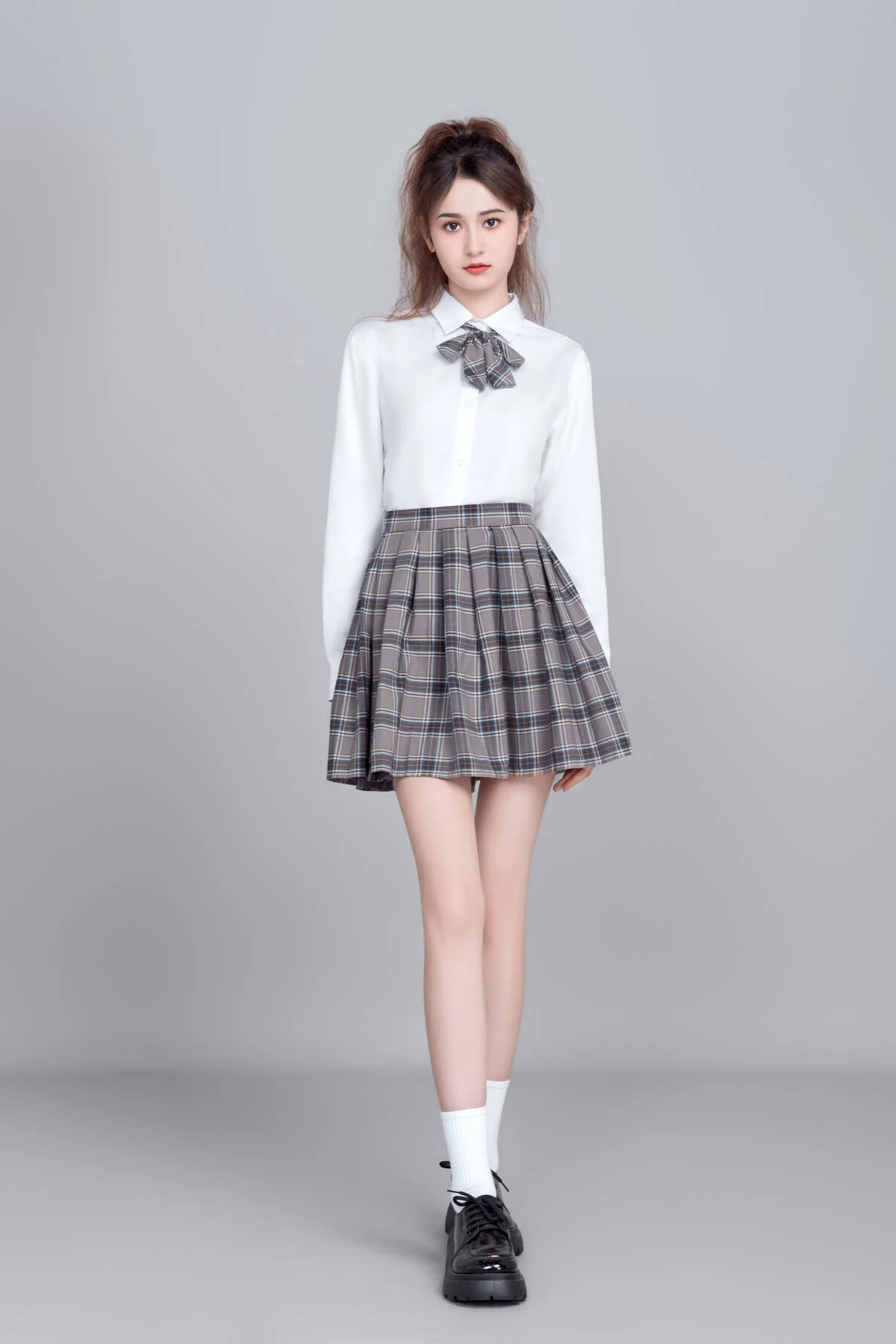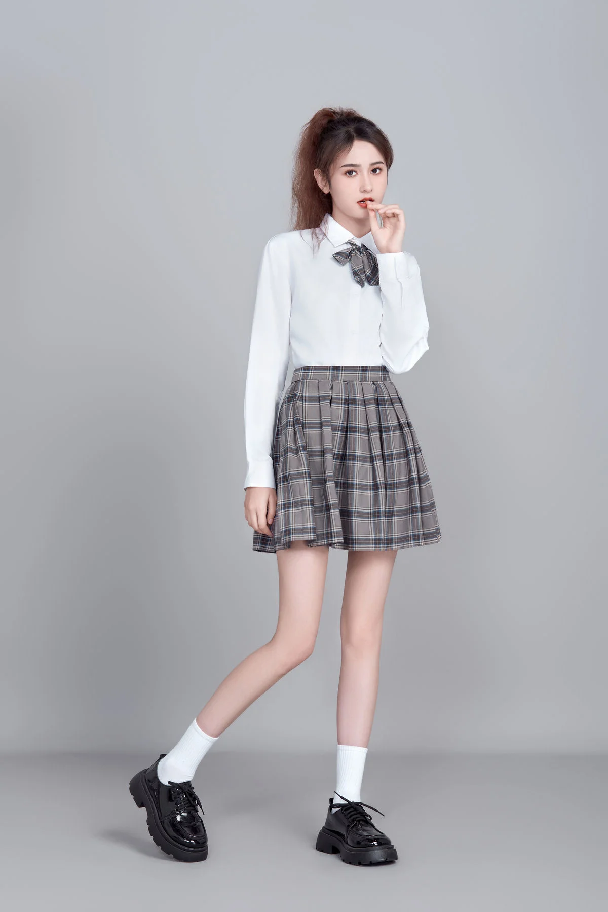 Step into a world where classic academic aesthetics meet fine art photography. In the latest release of 'Art Language' Vol.9089, model Kan Du Ke (坎杜克) embodies the essence of the 'Light Academia' trend, creating a visual narrative that is both nostalgic and refreshingly modern. This collection is a masterclass in minimalist styling and emotional storytelling.Dressed in a crisp white shirt and a perfectly pleated plaid skirt, Kan Du Ke redefines the iconic schoolgirl aesthetic with a graceful, sophisticated twist. The photography focuses on the silent dialogue between the subject and her surroundings, utilizing soft, natural lighting to highlight the ethereal quality of the moment. Each of the 15 frames captured in this series serves as a testament to the power of simplicity in fashion.