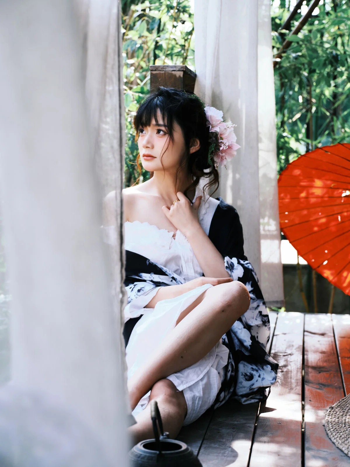 Step into a world of profound elegance and artistic storytelling with this captivating photography series featuring the talented model Ri Nai Jiao (日奈娇). In this specific collection, titled 未亡人 Part01, the artist explores a sophisticated mourning aesthetic that blends traditional somber tones with modern fashion sensibilities. The visual narrative is built around a stunning black lace ensemble, complemented by a delicate mourning veil that adds an air of mystery and grace to every frame. Ri Nai Jiao delivers a powerful performance, using subtle expressions and graceful poses to convey a sense of quiet reflection and timeless beauty.The lighting in these images is masterfully handled, highlighting the intricate textures of the lace and the soft contours of the studio setting. This collection is more than just a typical cosplay; it is a refined study in portrait photography where every detail, from the choice of accessories to the atmospheric backdrop, contributes to a cohesive and emotionally resonant theme. For fans of high-end photography and aesthetic fashion, this series offers a masterclass in thematic consistency and visual depth.