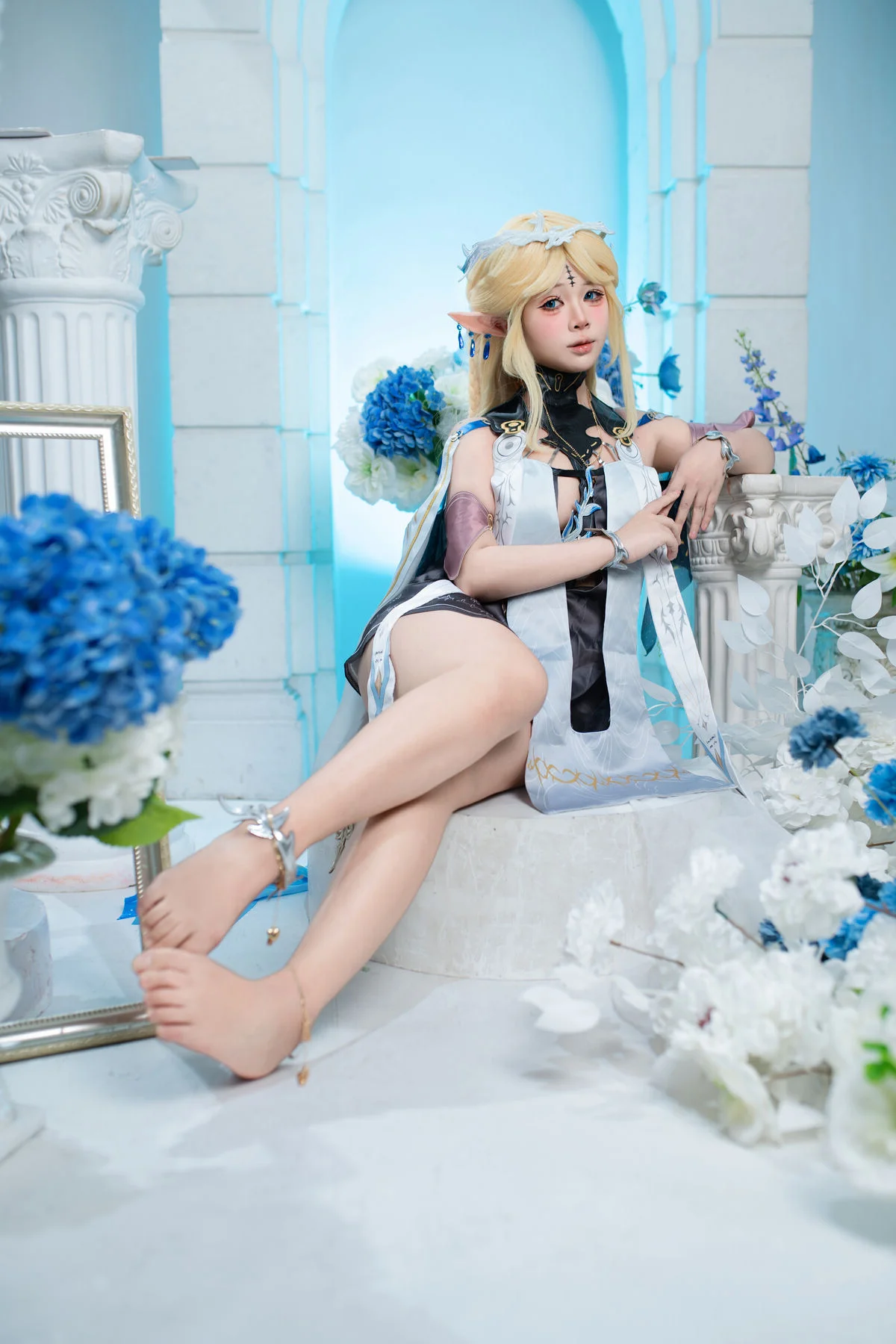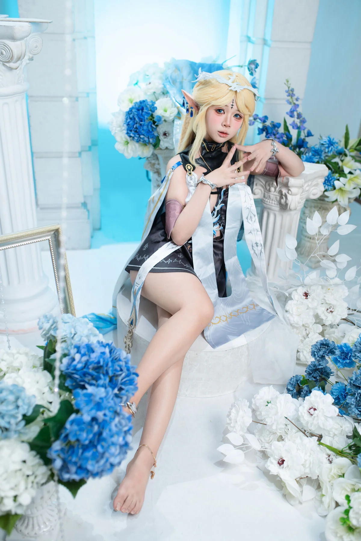 Step into the enchanting world of Wuthering Waves with this mesmerizing portrayal of Pyon Fleurdelys. Adorned in a magnificent blue and white ensemble, Pyon exudes an aura of elegant, mature beauty, reminiscent of an ethereal elf goddess. The intricately crafted elven ears and sharp gaze enhance her noble and powerful presence. Her meticulously designed costume, featuring flowing lines and soft ribbons, creates a look that is both alluring and mysterious. This is more than just an outstanding transformation; it's a perfect embodiment of a profound character, drawing all eyes with her undeniable confidence and captivating charm.#WutheringWaves #FleurdelysCosplay #PyonCosplay #FantasyCosplay #ElegantCosplay