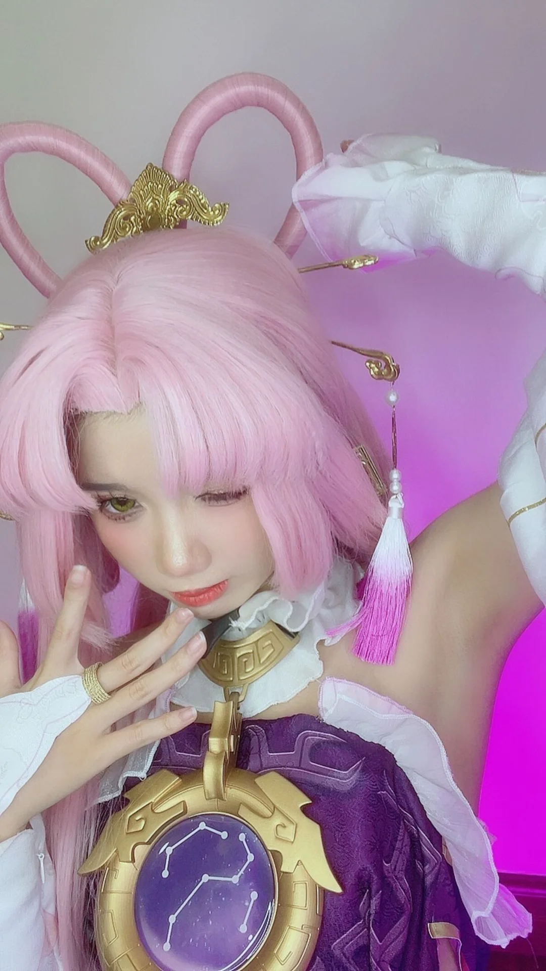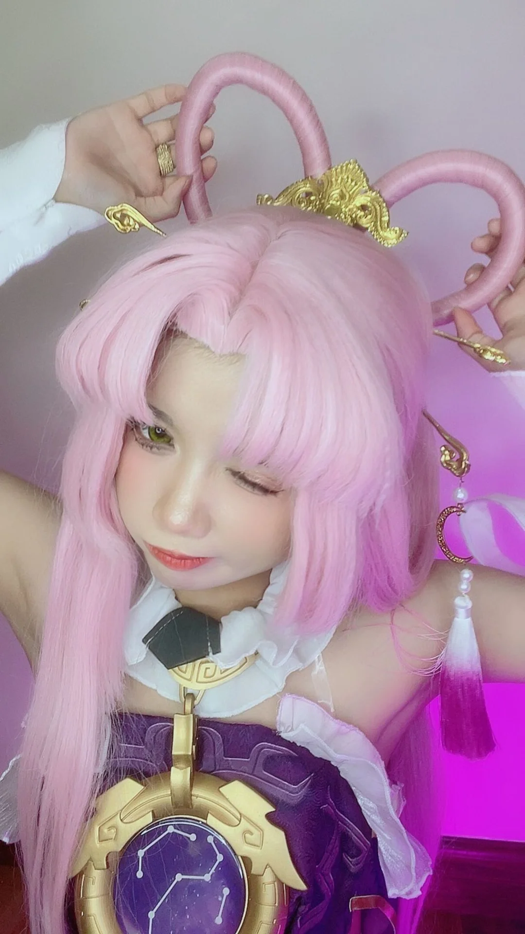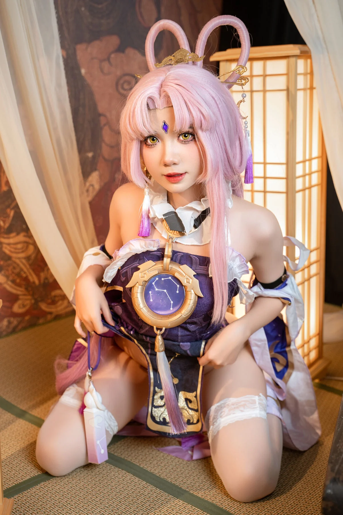 Step into the ethereal world of the Xianzhou Luofu with this breathtaking cosplay showcase featuring the talented PoppaChan as Fu Xuan. As the Master Diviner of the Divination Commission in Honkai: Star Rail, Fu Xuan is known for her calculated precision and regal elegance, both of which are captured flawlessly in this extensive digital collection. PoppaChan brings the character to life with incredible attention to detail, from the signature pastel pink hair to the intricately layered purple and gold traditional attire that reflects the character's high-ranking status.This premium set, identified as PoppaChan - Fu Xuan (62P - 12V), offers an immersive look at the artistry behind professional cosplay. With 62 high-resolution photographs and 12 captivating videos, fans can appreciate the dynamic poses and cinematic lighting that highlight the mystical aura of the Master Diviner. Whether she is wielding her signature confidence or showcasing the delicate embroidery of her costume, every frame feels like a scene pulled directly from the game’s universe.