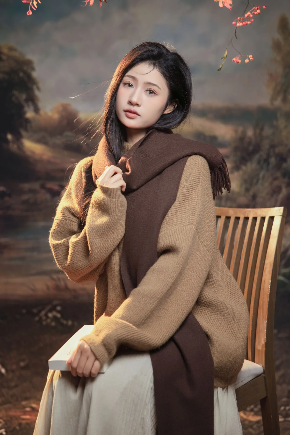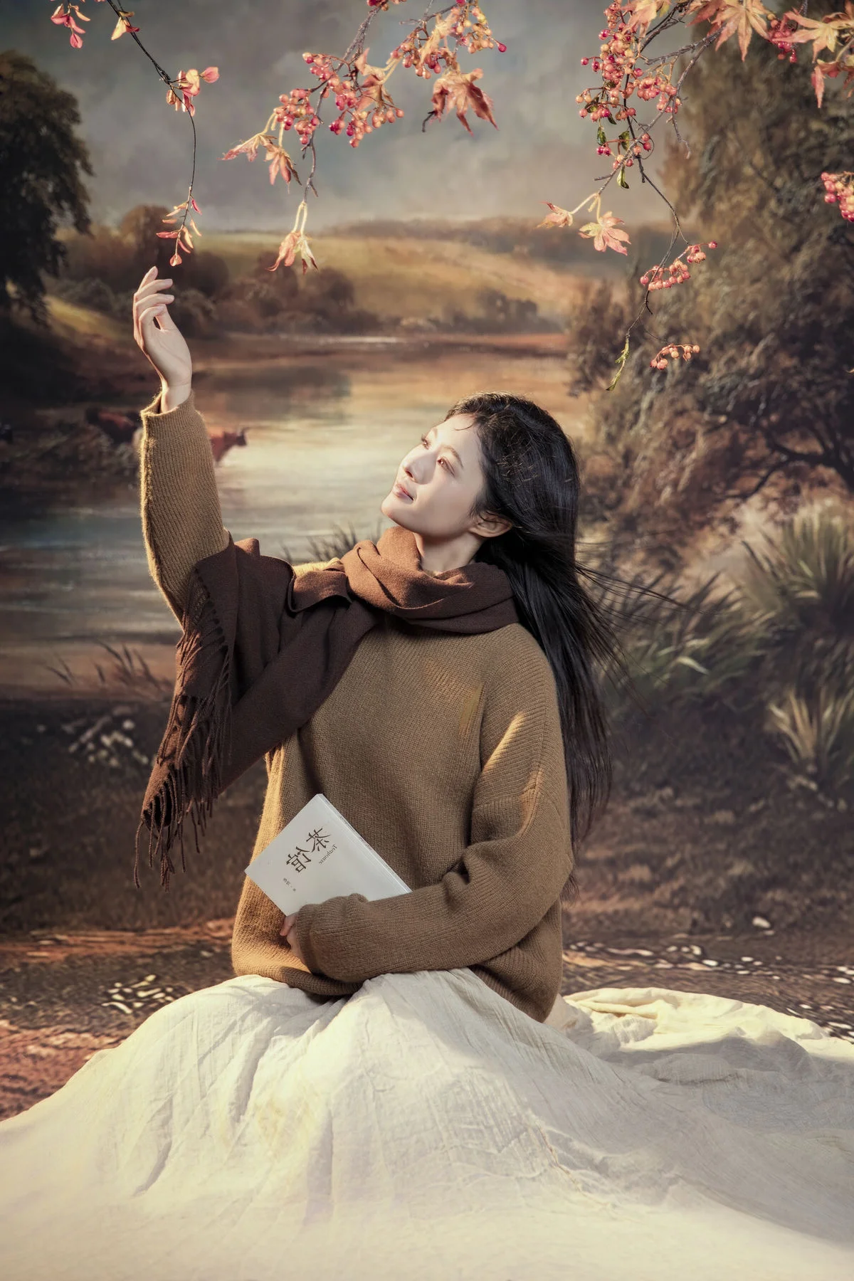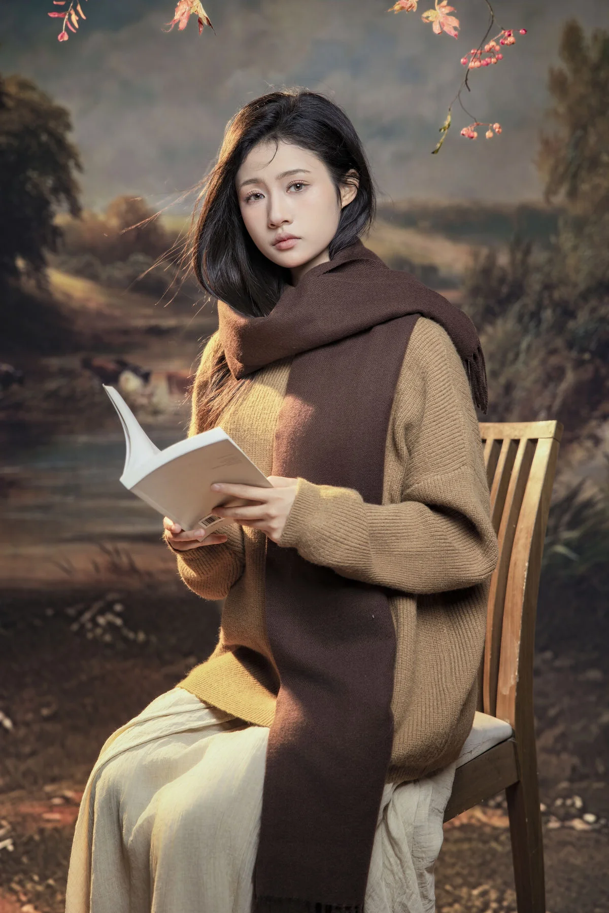 In the YiTuYu Vol.8813 photo collection, model Xin Xin appears with an elegant and thoughtful beauty. She sits amidst a romantic autumn setting, dressed in a warm sweater and scarf, creating a gentle, approachable image. Her dreamy gaze is directed into the distance, as if immersed in the emotions of late autumn. The red leaves and golden hues of the landscape blend, evoking a peaceful space where time seems to stand still. The book in her hand becomes a symbol of tranquility and inner depth. This is a beautiful transitional moment, where Xin Xin's beauty merges with nature's symphony, bringing a sense of relaxation and poetic charm.#XinXin #AutumnPortrait #YiTuYu #AutumnScene #AsianBeauty