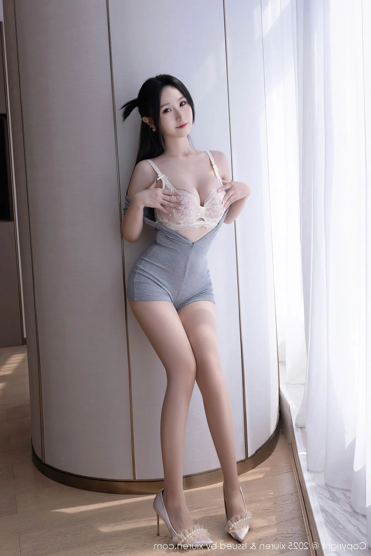 Set against the backdrop of a contemporary and minimalist interior in Changsha, Xing Ya Da exudes a captivating blend of grace and modern sophistication. Her choice of a subtle grey outfit highlights a refined aesthetic, where the soft fabric perfectly complements her poised silhouette and natural charm. The soft lighting filtering through the room enhances the serene mood, making every detail from her confident expression to her elegant posture stand out with clear artistic intent. The nude stiletto heels add a touch of timeless glamour, lengthening her frame and completing the chic ensemble. Changsha, known for its vibrant energy and artistic soul, provides the perfect stage for this visual narrative of quiet confidence and style. This image captures more than just a fashion moment; it reflects a lifestyle of understated luxury and poise in the heart of the city. It is a beautiful reminder of how simplicity can be the ultimate form of elegance, creating a lasting impression of beauty and tranquility.