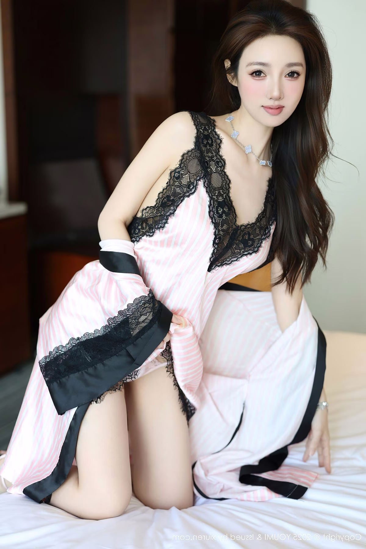 The YouMi Vol.1153 collection proudly presents Li Yan Xi, a Chinese model with an enchanting beauty. In these photographs Li Yan Xi shines brightly in a shimmering light pink outfit that accentuates her perfect curves. Her confident demeanor deep gaze and gentle smile create an irresistible charm. Every moment reflects her elegance sophistication and high-class style. Li Yan Xi is not just a model but also an icon of modern allure sparking viewers curiosity. This photo series harmoniously blends traditional East Asian beauty with bold innovation offering a truly impressive visual experience.