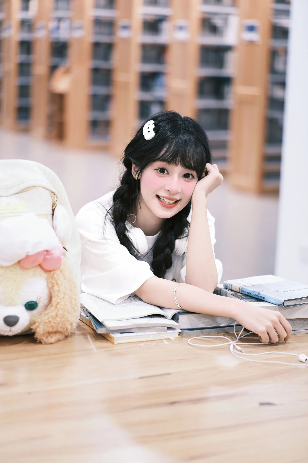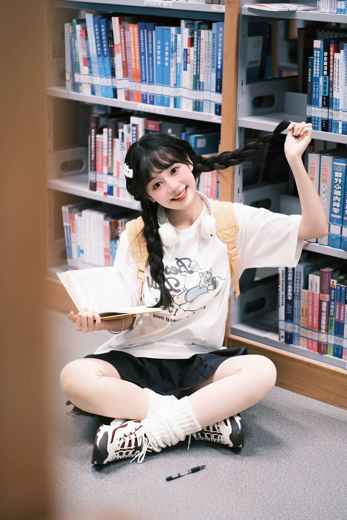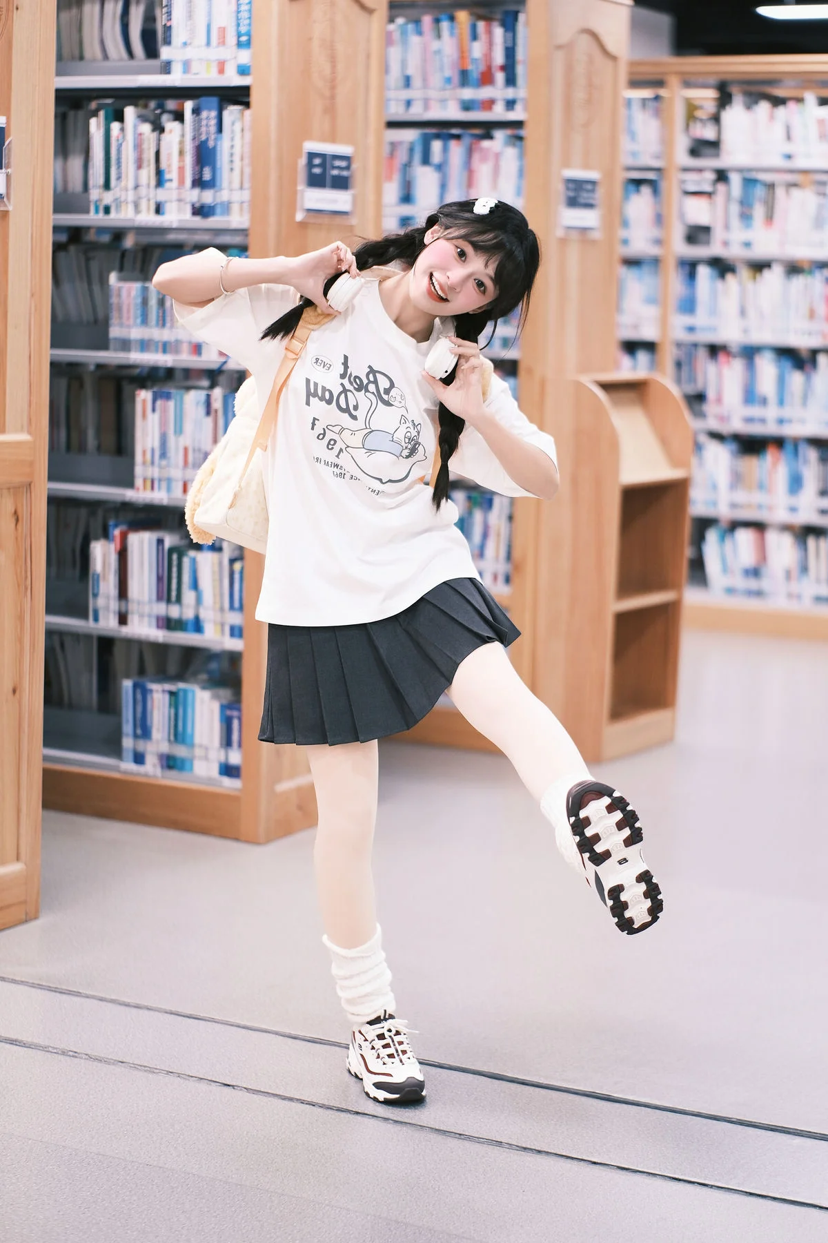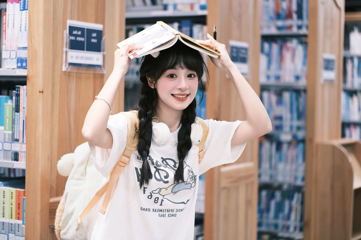 Amidst the towering bookshelves and the hushed whispers of the library, Xia Yu Xiao Nian emerges like a burst of morning sunshine. Her playful wink and radiant smile breathe life into the typically solemn atmosphere, capturing a moment of pure, youthful joy. Dressed in a minimalist white t-shirt and styled with charming braids, she embodies the quintessential student aesthetic that is both timeless and refreshing. The inclusion of headphones and a whimsical plush backpack adds a touch of modern personality to the scene, blending academic focus with a lighthearted spirit. The soft lighting and shallow depth of field beautifully accentuate her expressive features, making every frame feel like a nostalgic memory of school days. This collection from YiTuYu Vol.8898 is more than just a photoshoot; it is a visual exploration of innocence and the vibrant energy that a single person can bring to a quiet space, reminding us that inspiration can be found even in the most studious of environments.#StudentAesthetic #LibraryMoments #XiaYu #XiaoNian #YouthfulVibes #VisualArt