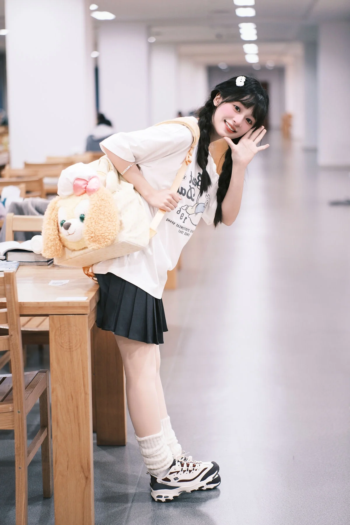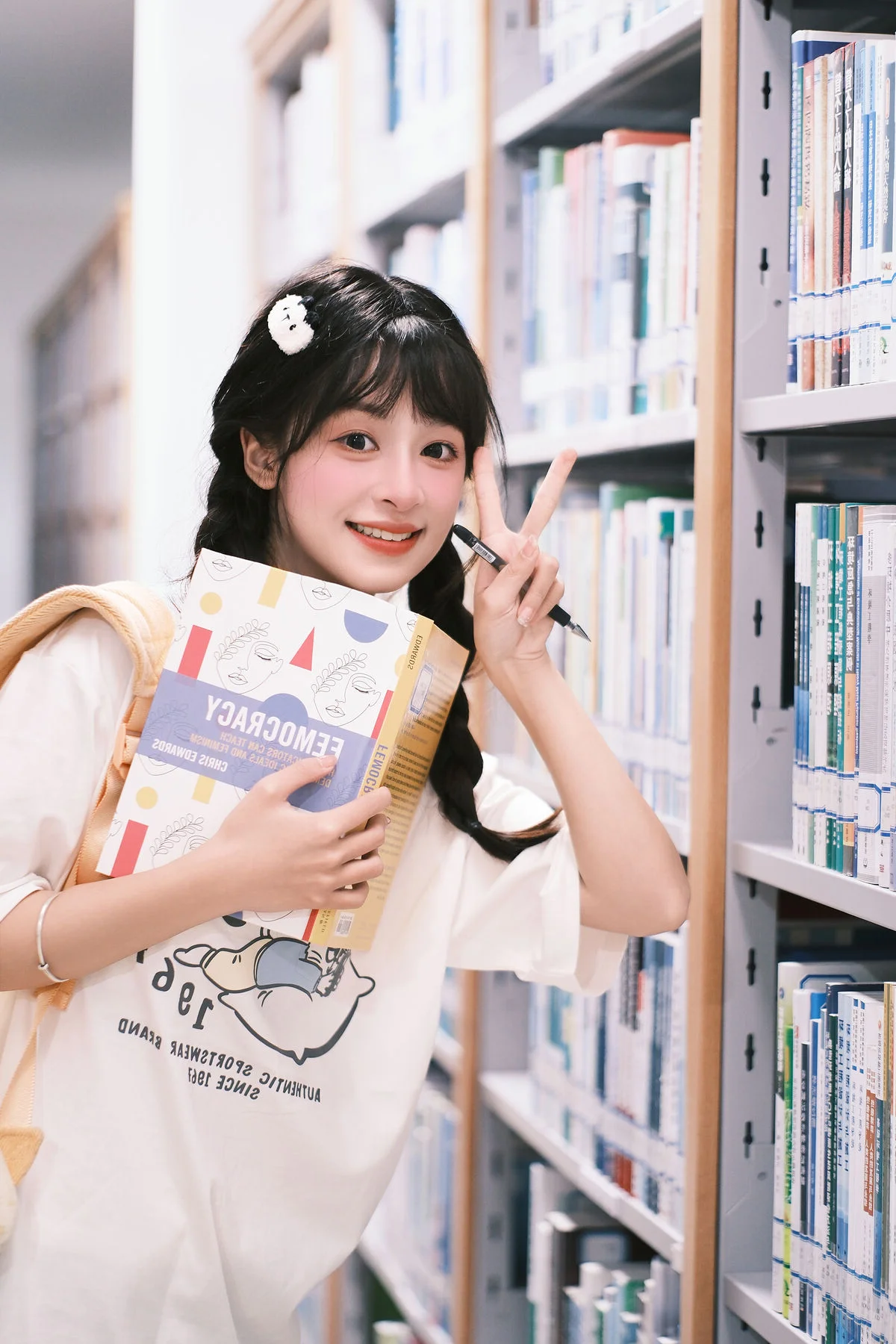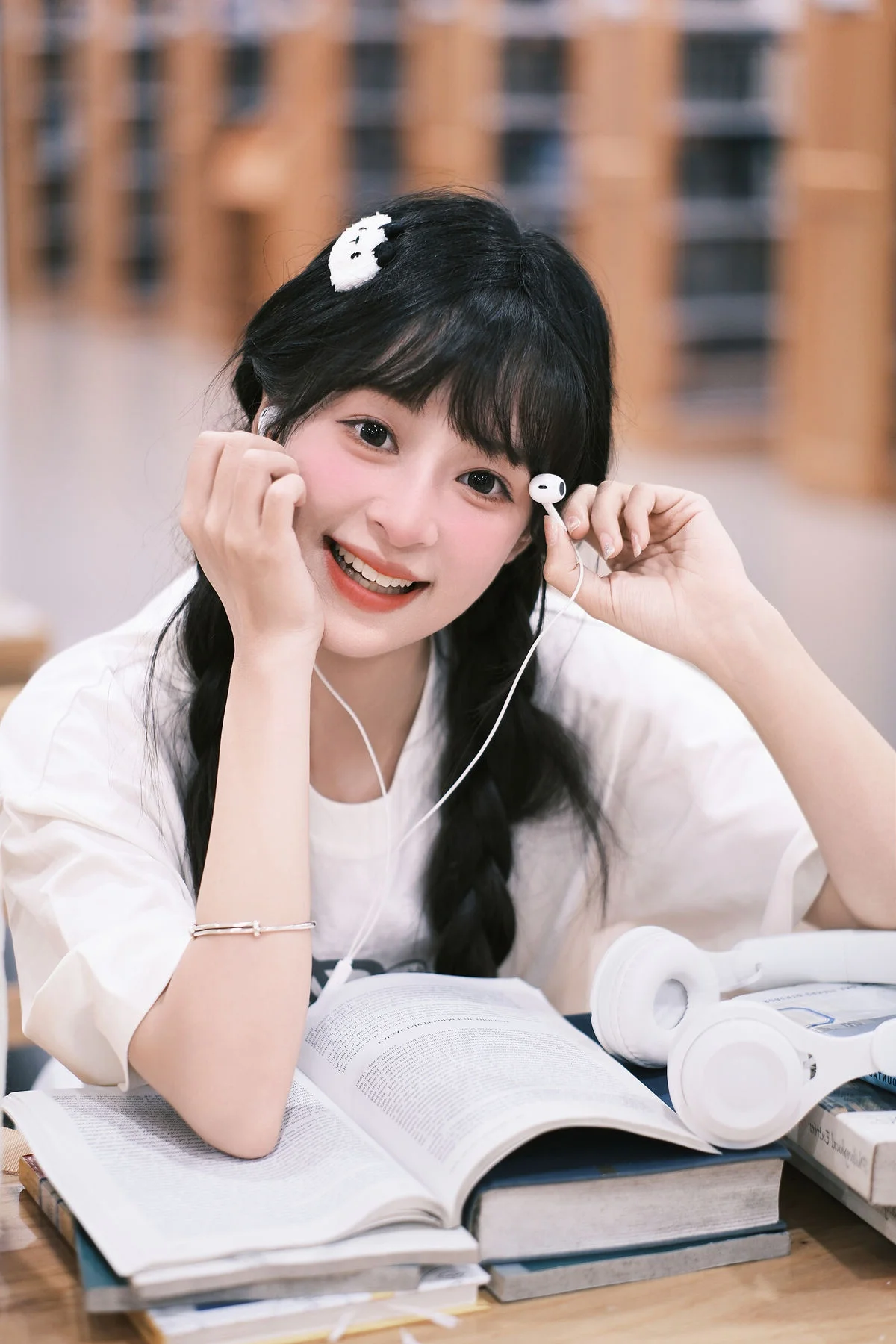 Amidst the towering bookshelves and the hushed whispers of the library, Xia Yu Xiao Nian emerges like a burst of morning sunshine. Her playful wink and radiant smile breathe life into the typically solemn atmosphere, capturing a moment of pure, youthful joy. Dressed in a minimalist white t-shirt and styled with charming braids, she embodies the quintessential student aesthetic that is both timeless and refreshing. The inclusion of headphones and a whimsical plush backpack adds a touch of modern personality to the scene, blending academic focus with a lighthearted spirit. The soft lighting and shallow depth of field beautifully accentuate her expressive features, making every frame feel like a nostalgic memory of school days. This collection from YiTuYu Vol.8898 is more than just a photoshoot; it is a visual exploration of innocence and the vibrant energy that a single person can bring to a quiet space, reminding us that inspiration can be found even in the most studious of environments.#StudentAesthetic #LibraryMoments #XiaYu #XiaoNian #YouthfulVibes #VisualArt