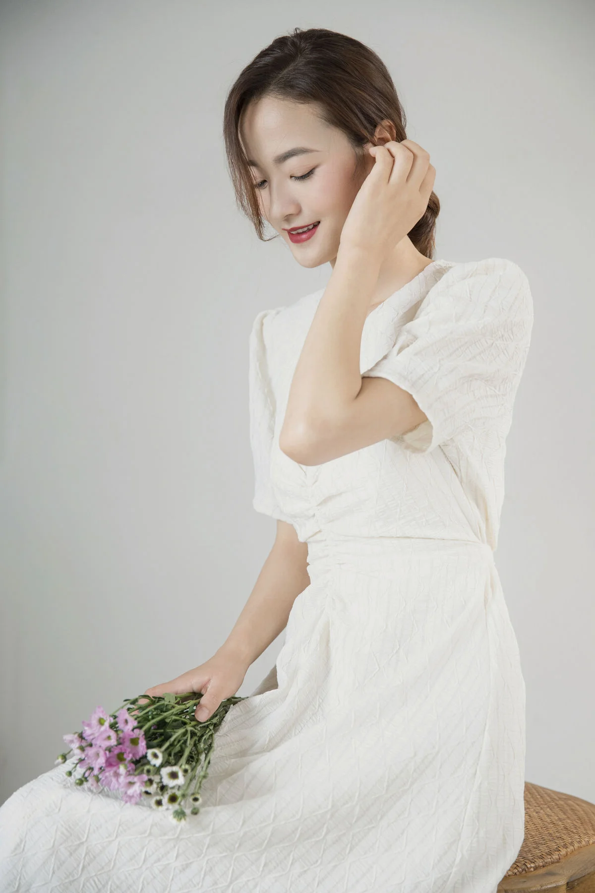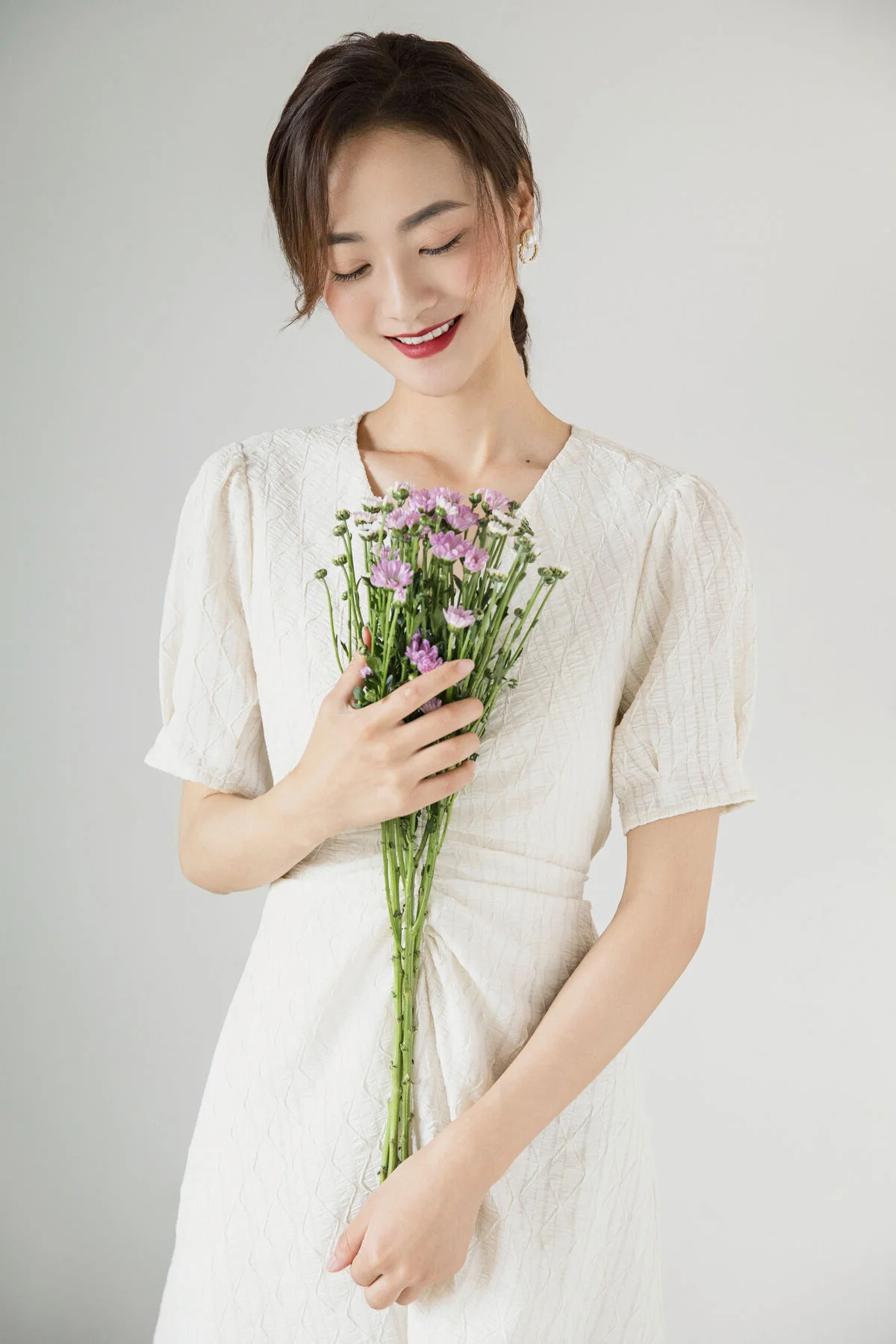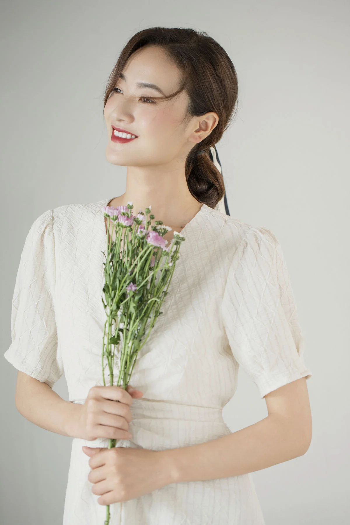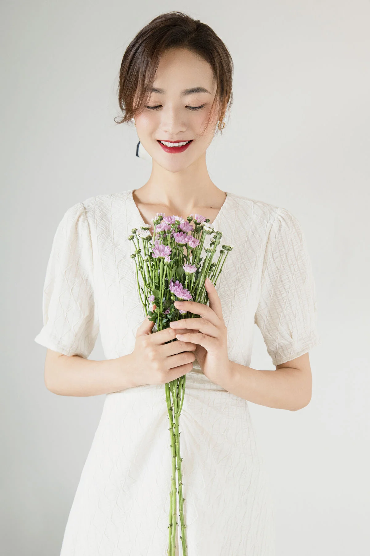 Discover the graceful allure of Zhou Xu Xu in this captivating YiTuYu Vol.8758 photoshoot. Model Zhou Xu Xu radiates gentle charm, showcasing a radiant smile and clear, serene eyes that embody pure elegance. Dressed in a simple yet refined cream-colored dress, she delicately holds a small, exquisite bouquet of blooming flowers, enhancing her natural and fresh beauty. The petite bouquet, with its blossoming florets, symbolizes vitality and subtle grace. The entire image conveys a moment of tranquility, rich in emotion and ethereal charm. Zhou Xu Xu presents a soft, captivating presence, leaving a lasting impression of understated beauty that shines brightly.#ZhouXuXu #YiTuYu #PureBeauty #ModelWithFlowers #ElegantStyle