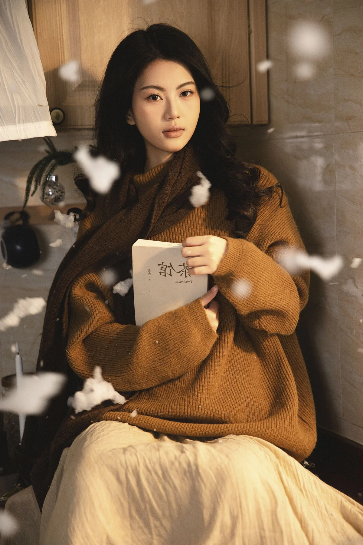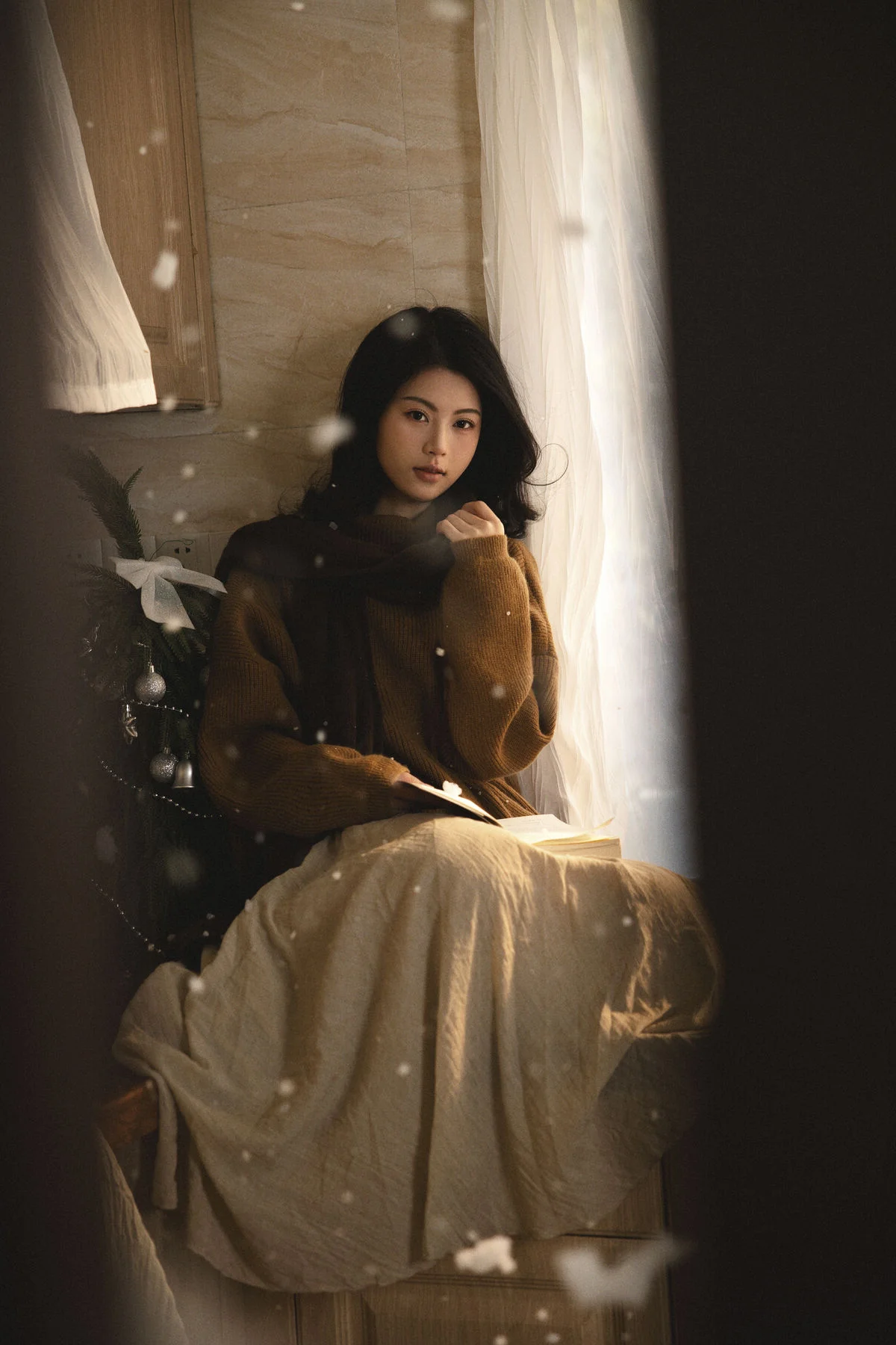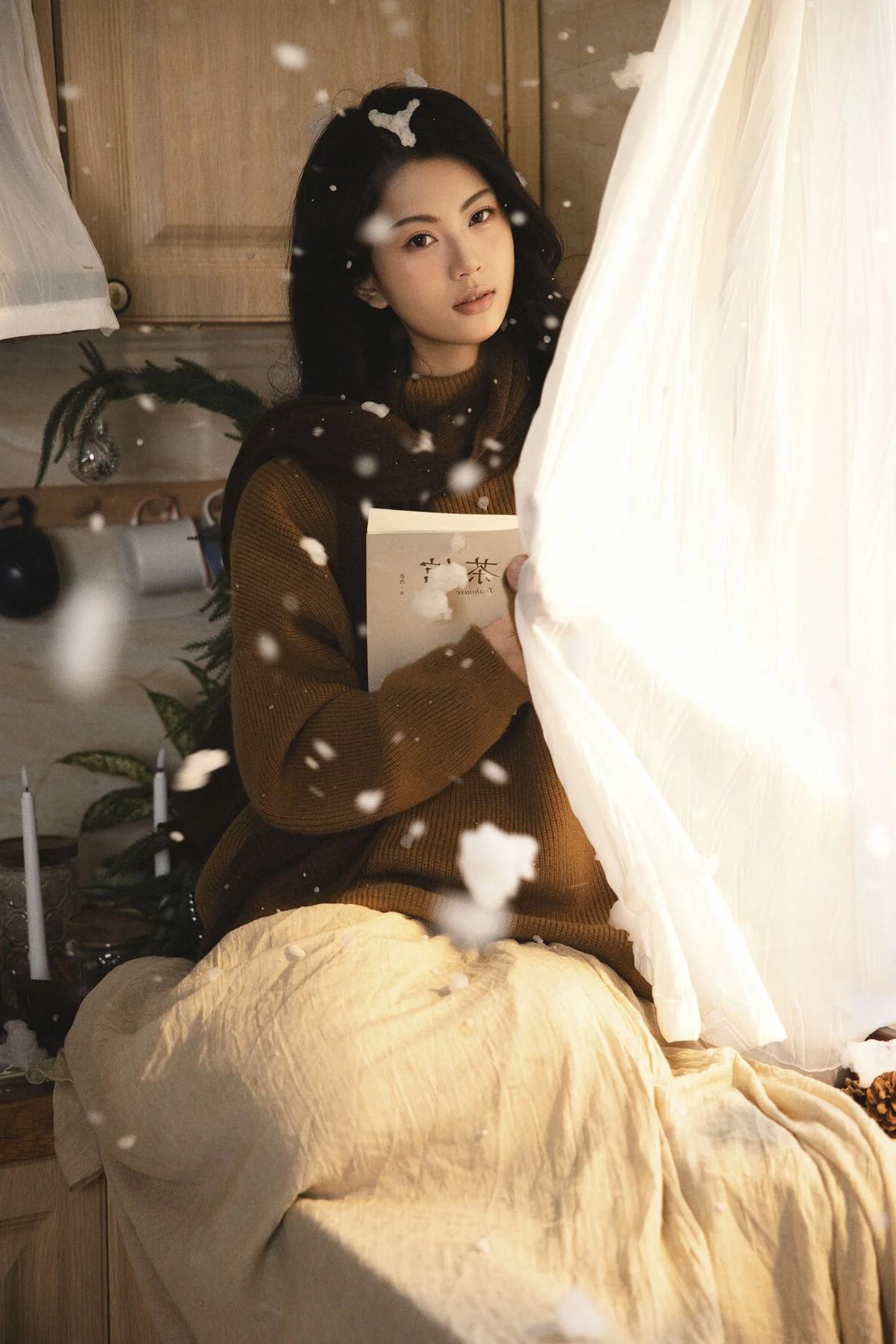 This captivating image from the YiTuYu Vol8785 collection beautifully portrays model Dan Dan her ethereal beauty shining through Perched gracefully by the window in a warm kitchen bathed in soft late autumn light Dan Dan’s gaze drifts into the distance hinting at a pensive and profound inner world Her cozy brown sweater and elegant cream-colored long skirt enhance her classic and refined charm The setting though simply adorned with subtle details like green foliage and candles creates a romantic and tranquil ambiance This moment invites viewers to delve into Dan Dan's deep introspection experiencing the quiet serenity and nostalgia of a peaceful autumn afternoon#DanDan #YiTuYu #AutumnVibes #CozyKitchen #EtherealBeauty